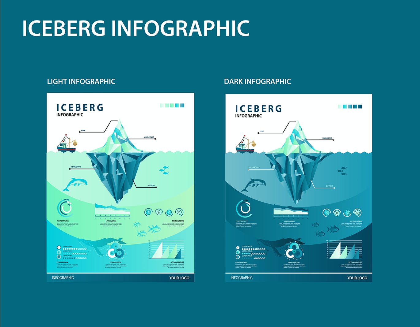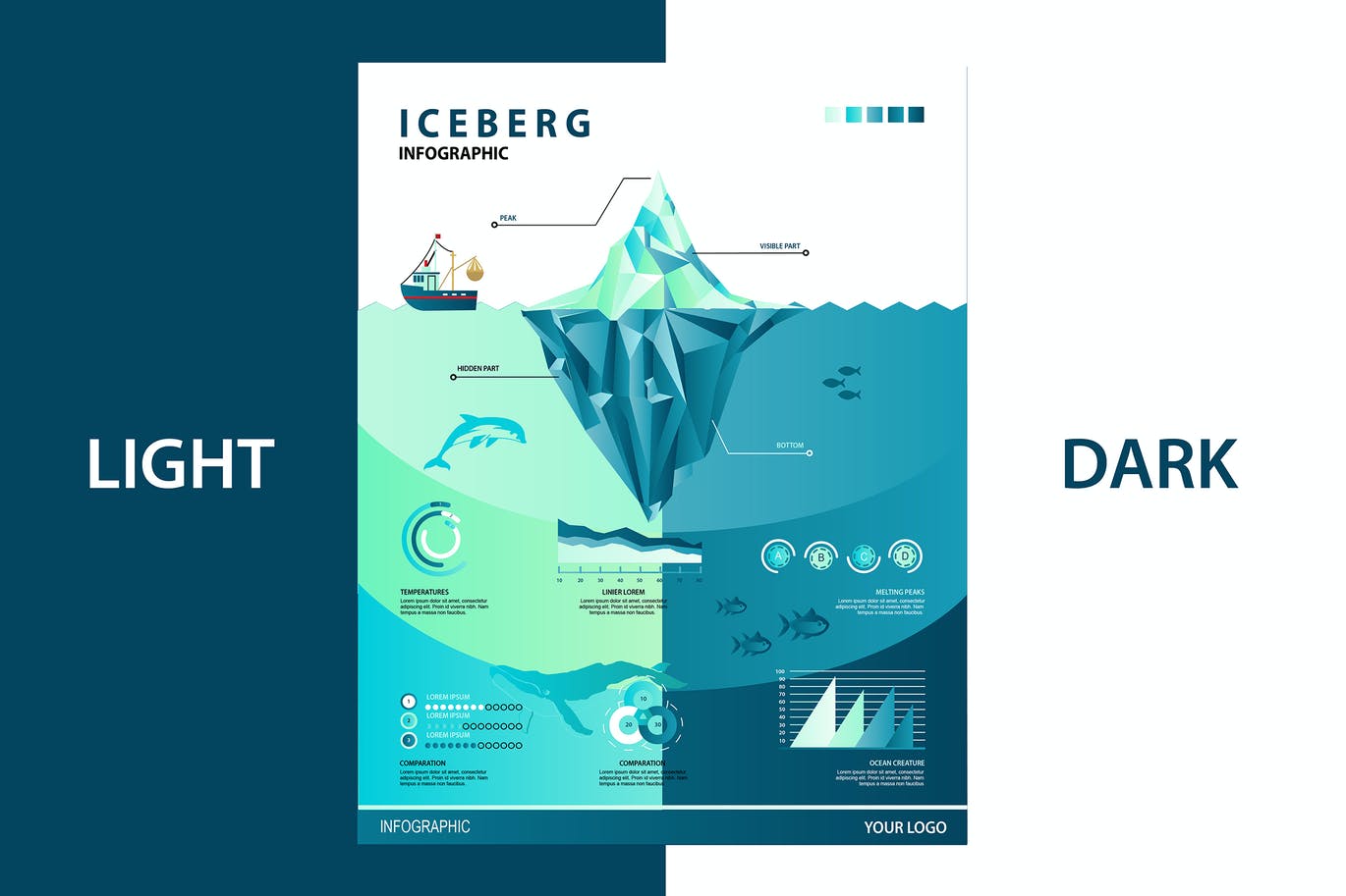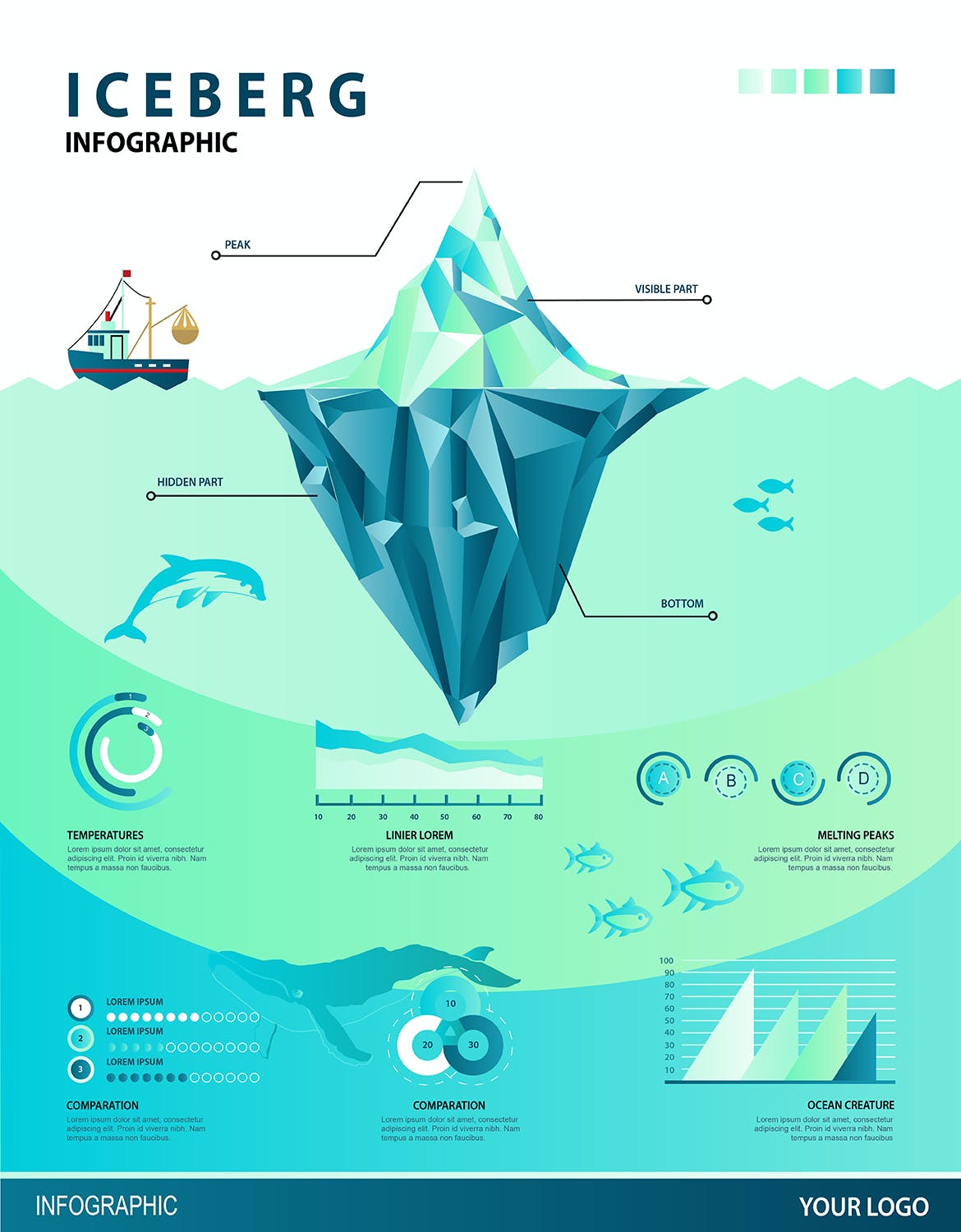 这次老不湿分享的是,简约清新冰山大数据信息图海报设计模板-AI, EPS, JPG, PDF, 预先制作的信息图,便于设计内容!