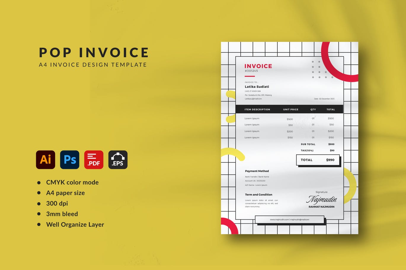 这次老不湿分享的是,时尚高端专业的高品质发票设计模板-AI, PDF, PSD, EPS,高品质传单模板。易于定制。您可以自定义文本、大小、颜色。