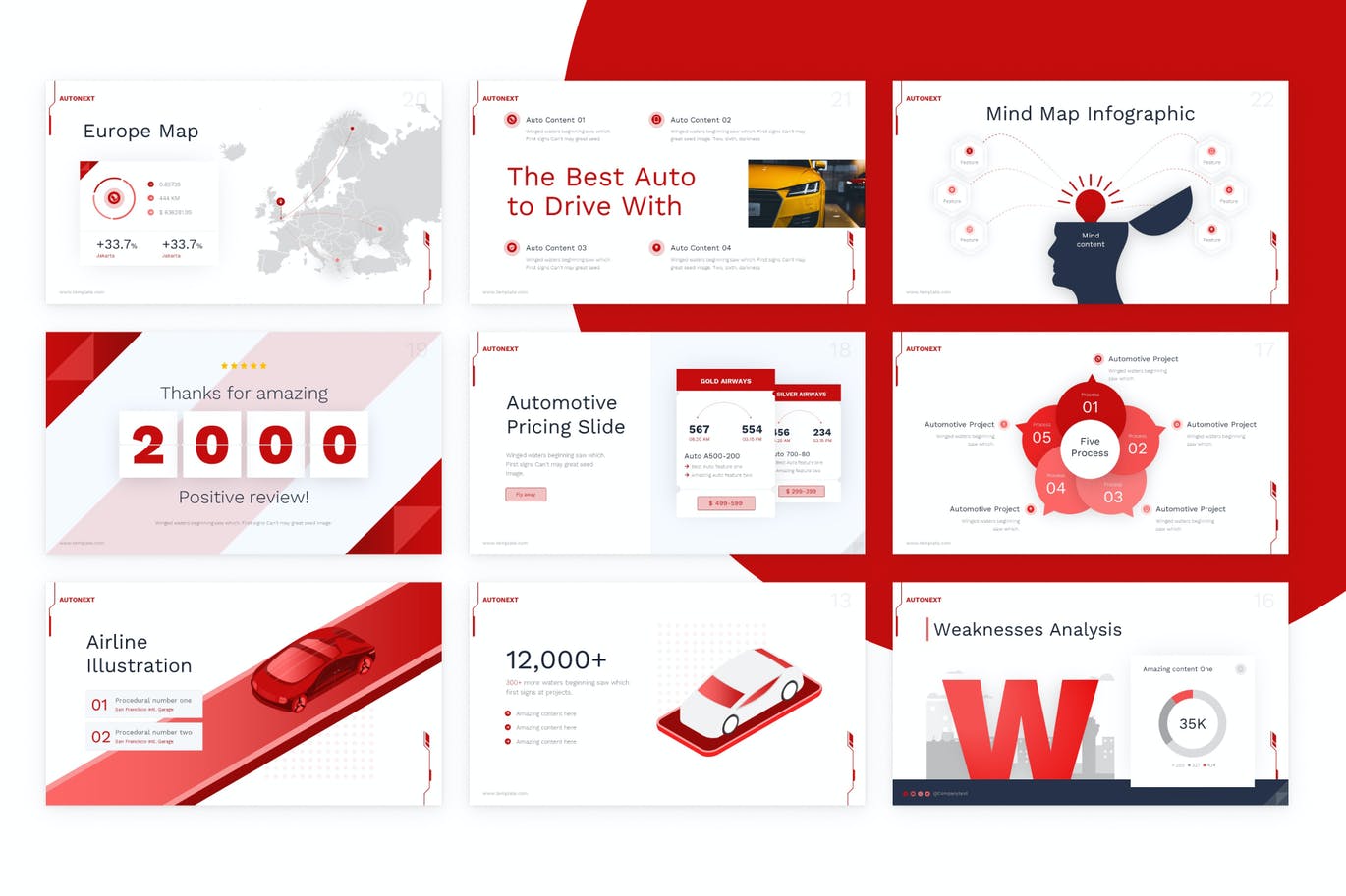 **Autonext Automotive PowerPoint模板**我们现在可以很容易地找到许多令人惊叹的演示模板。因此,我们需要改变我们的思维方式,不仅要展示完美的幻灯片,还要提升其中的体验。在这里,我们向您展示信息图表包,用于在业务发展的每个阶段提供整体品牌接触点,从开始一个新项目、在竞争对手中建立知名度,到以改进的目标主张结束。