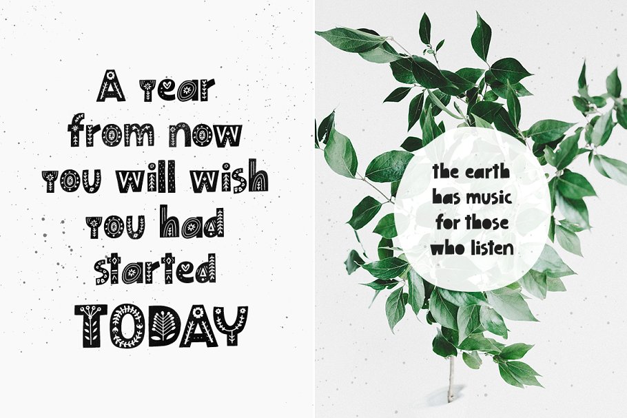 这组字体的灵感来自北欧民俗和传统芬兰和瑞典民间艺术,斯堪的纳维亚字体系列包括三种字体:装饰字体、黑色字体和符号,您可以混合和匹配它们来获得有趣的组合字体。