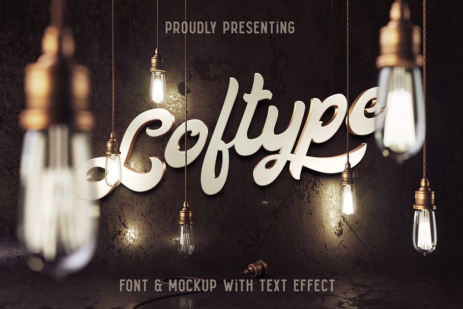 今天展示一个名为“Loftype”的设计集。它包括一个具有各种OpenType特性的字体文件——许多连接符和带有swashes的替换字符(您可以通过“OpenType”选项卡访问它们,或者从“Glyphs”选项卡手动插入它们)。此外,你将得到一个渲染的模型场景和挤压文本效果。您可以在第一个屏幕快照中看到结果(如何使用它,您将在Readme.txt中找到)。