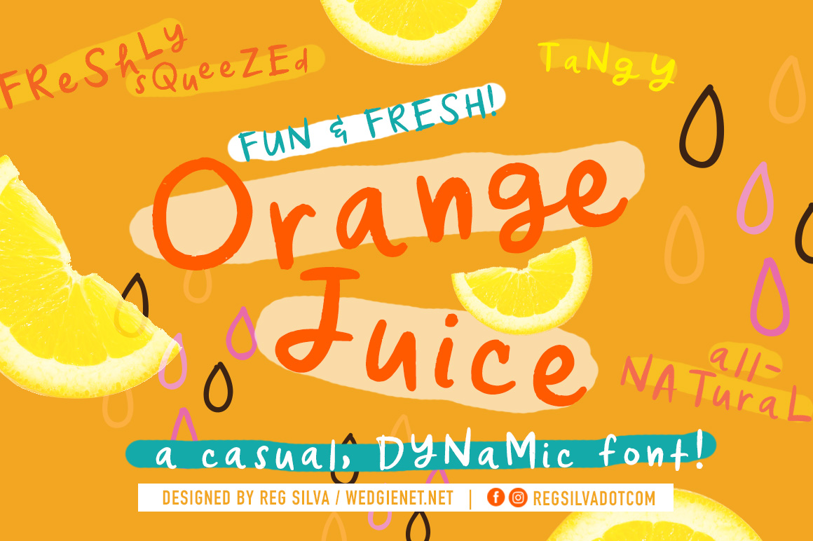 一种有趣的新字体,非常适合海报,杂志,食谱,派对邀请以及所有其他类型的显示类型!Orange Juice是一款充满活力且充满活力的手绘字体,为您的设计项目增添了年轻和充满活力的氛围。