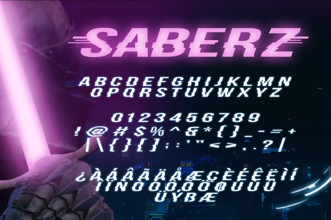 Saberz字体是粗体和斜体类型的无衬线字体。Saberz以水平碎片的形式出现毛刺效应。Saberz字体非常适用于海报,徽标,杂志,封面,横幅,T恤和标题,甚至是大型艺术品。