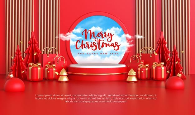 圣诞快乐,新年快乐,3d产品展示和圣诞饰品高级Psd素材,旨在推广宣传你的圣诞活动,可用于你能想到的一切项目。