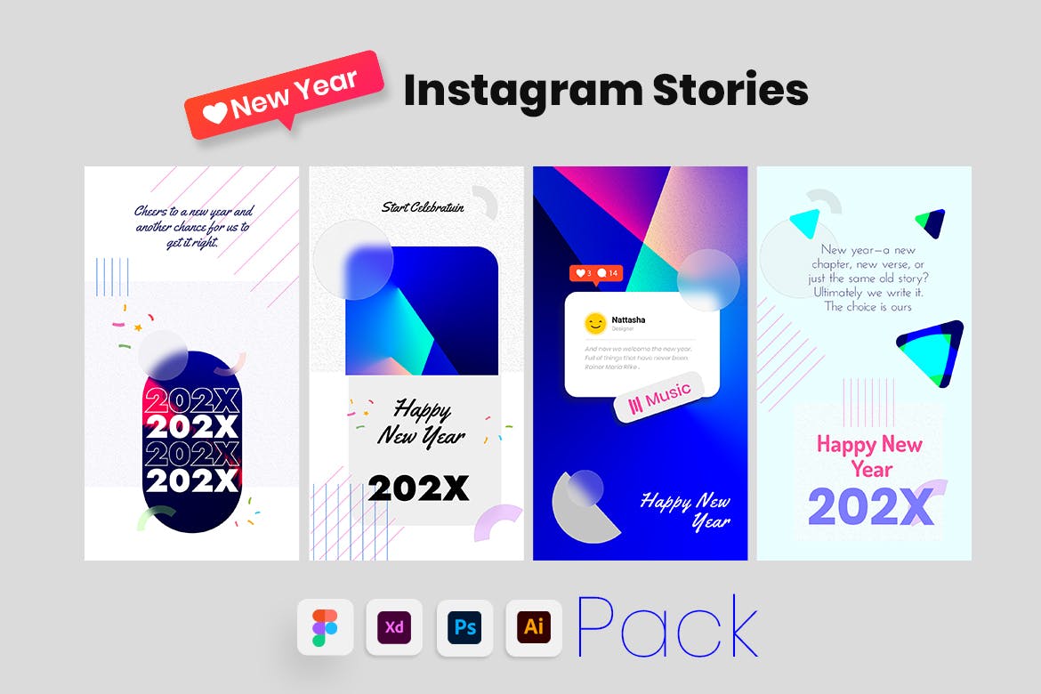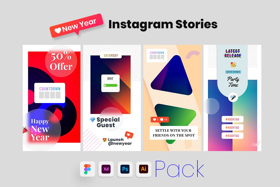 这次老不湿分享的是,高品质的2022新年圣诞节Instagram社交媒体banner海报设计模板集合-AI, EPS, PDF, PSD,可编辑的文本、图像和颜色。