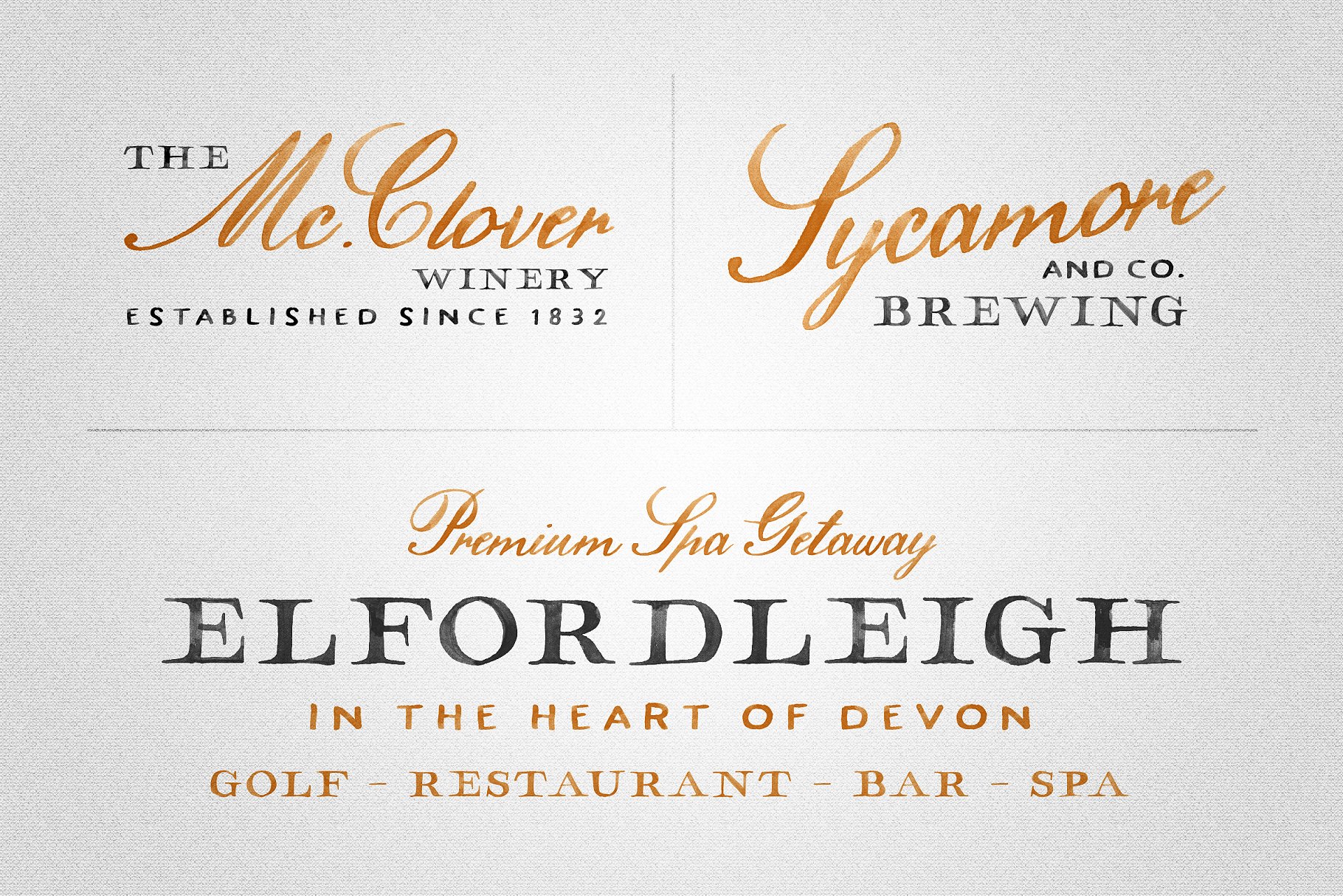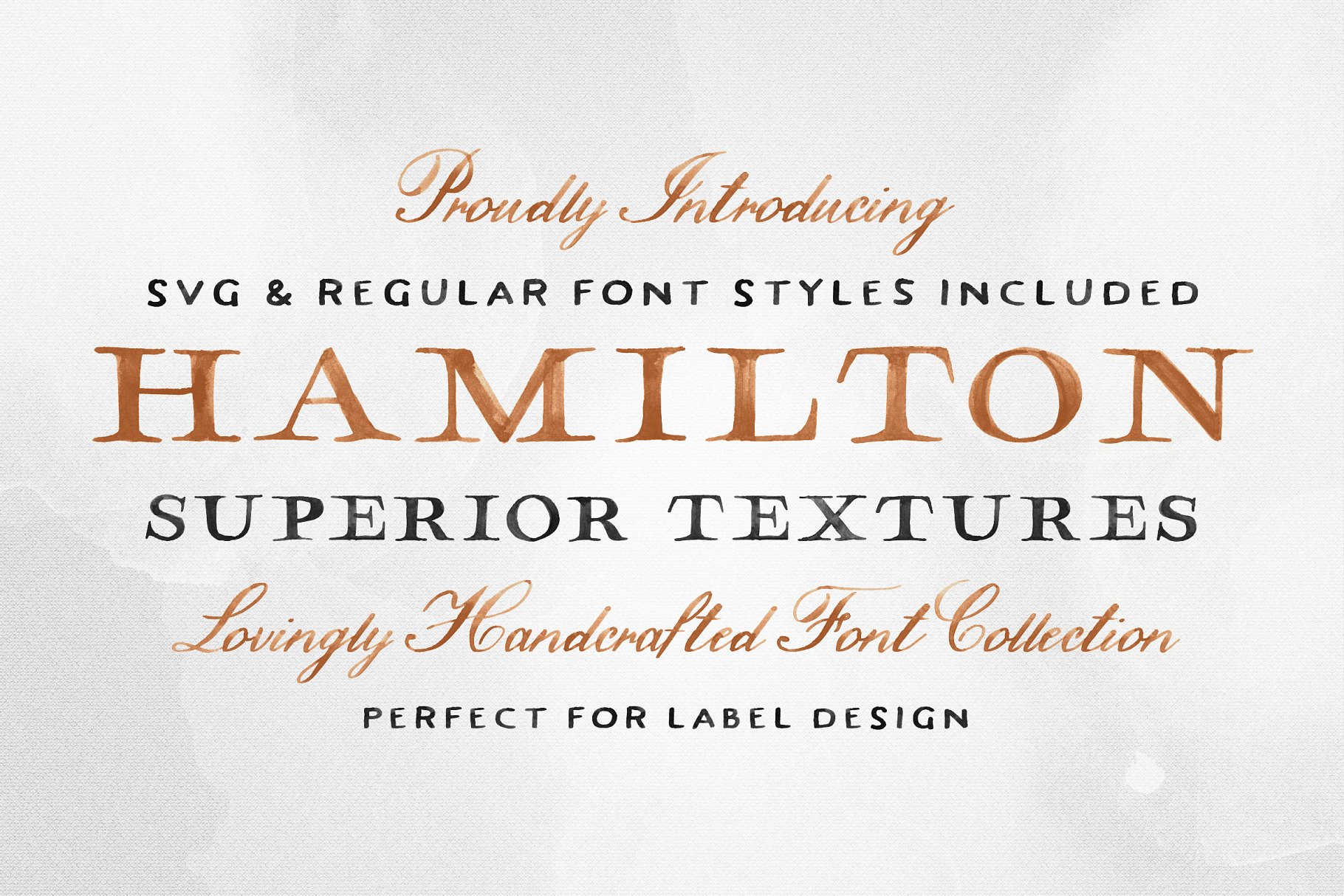 Hamilton SVG字体系列具有serif、sans serif和脚本; 每一个都拥有精致和手工绘制的纹理贯穿始终。受复古地图、葡萄酒和威士忌标签的启发,Hamilton被设计成一只优雅的猫,完美地用于包装设计、标识、邀请等等。