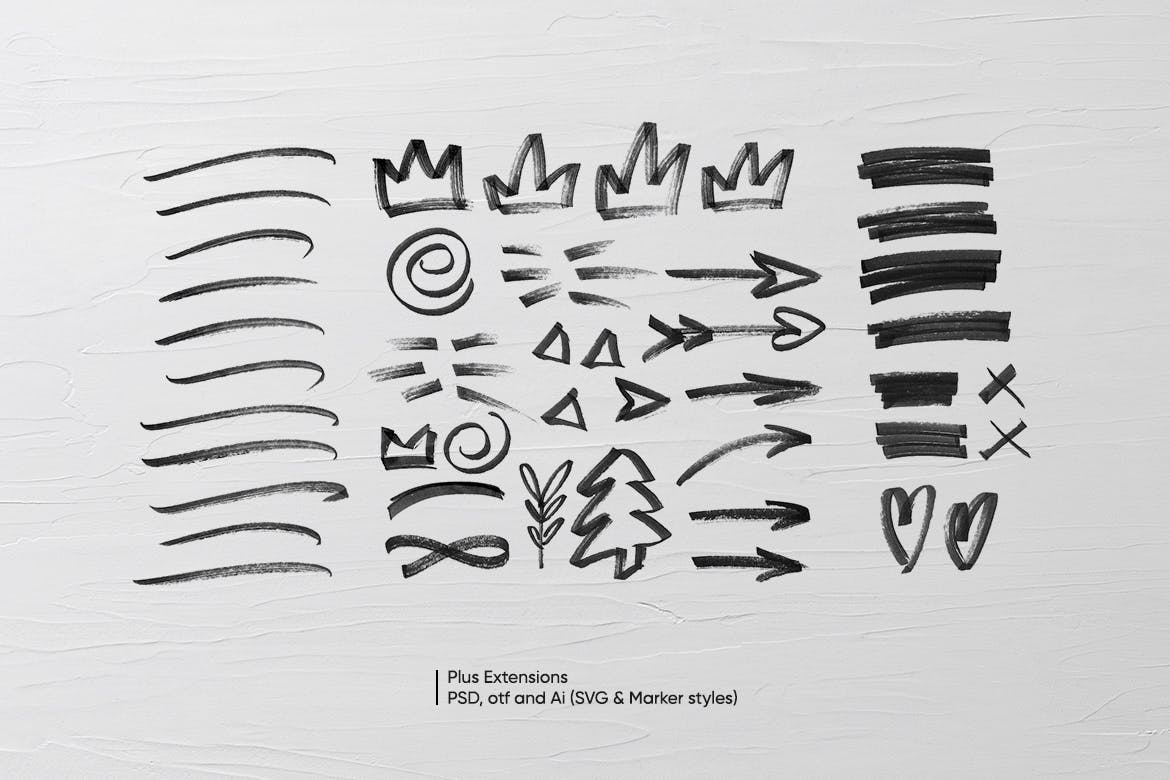 黑石标记+ SVG是一种显示字体系列,适用于需要标题,标识,服装,邀请,品牌,包装,广告等字体的人。自然纹理带来独特的触感。
