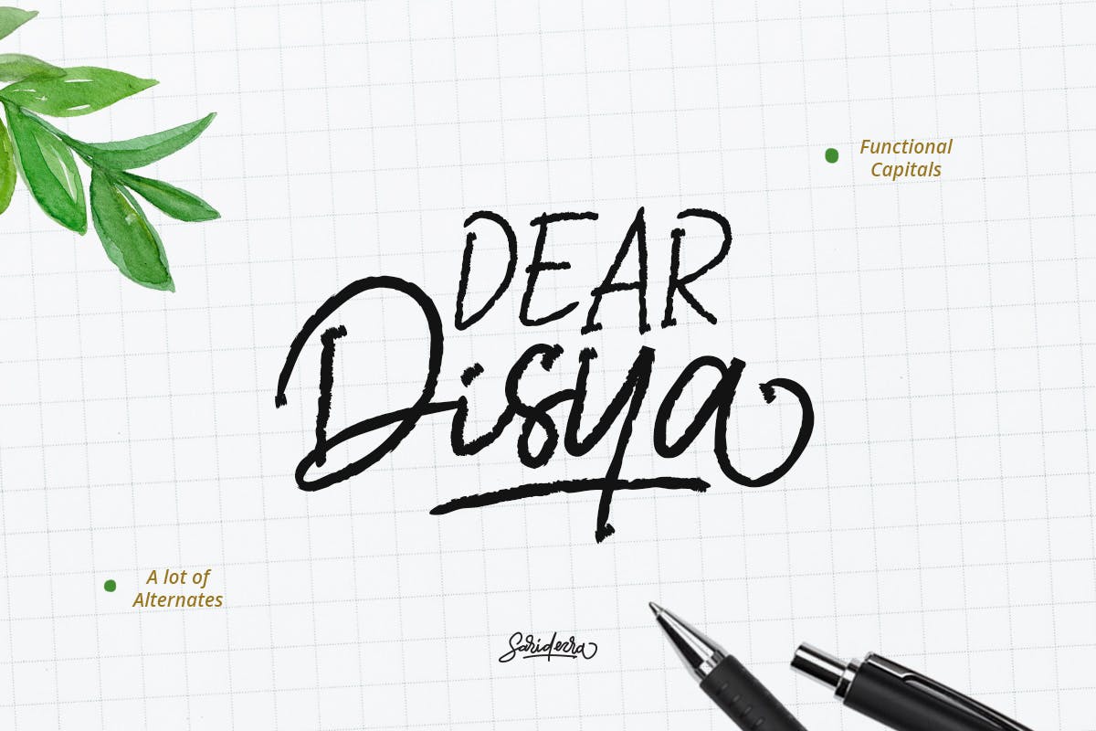 亲爱的Disya是手写字体,包含连字,样式替代,swash等,以创建自己的自定义手写。此字体也支持多语言。这种字体在OTF和TTF中可用。当然,用心做。