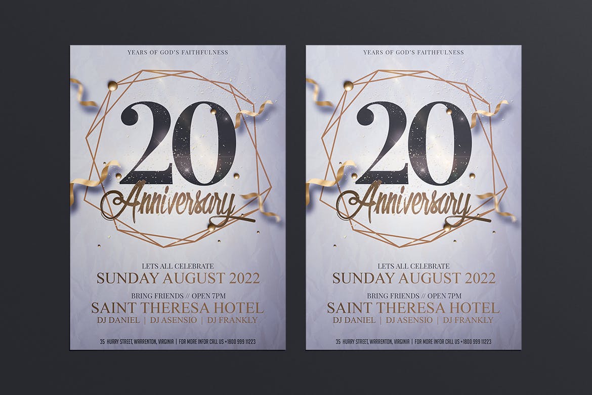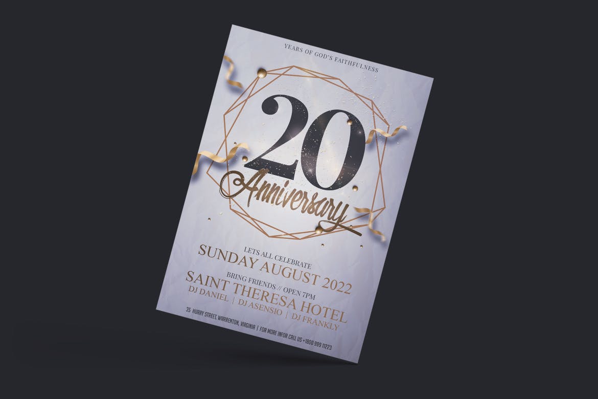 这款周年纪念传单PSD模板适用于教堂布道会和其他如何获取知识的会议,周年庆祝海报模板。