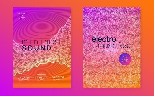 动态渐变形状和线条音乐节海报设计模板,动态渐变形状和线条。用于霓虹电子派对传单和迪斯科杂志封面。