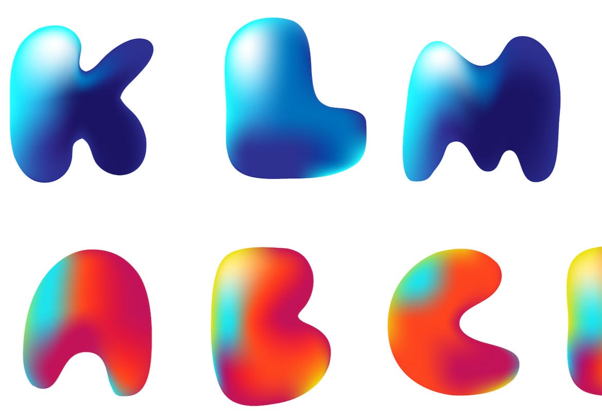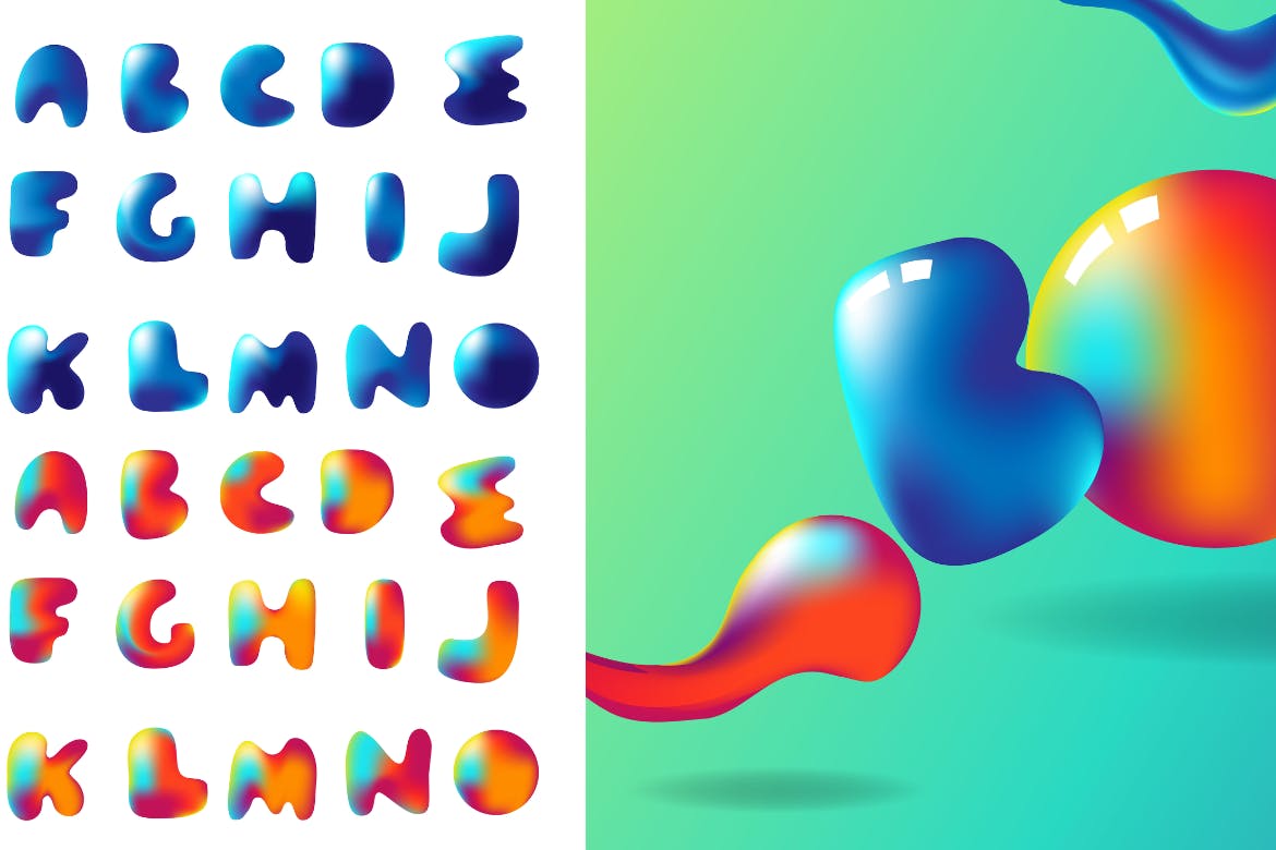 这次老不湿分享的是,可爱的时尚高端简约渐变液体质感英文字母数字集合part.2,此图形是现成的液体型面,用于标题或显示。包含的文件是兼容性EPS 10