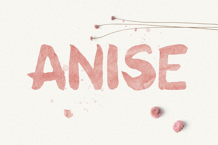 Anise – 手绘字体和4种水彩纹理。适用于邀请函、标志、品牌、博客、手工工艺品、剪贴簿、打印纸张项目等等。
