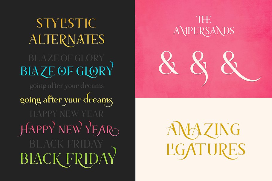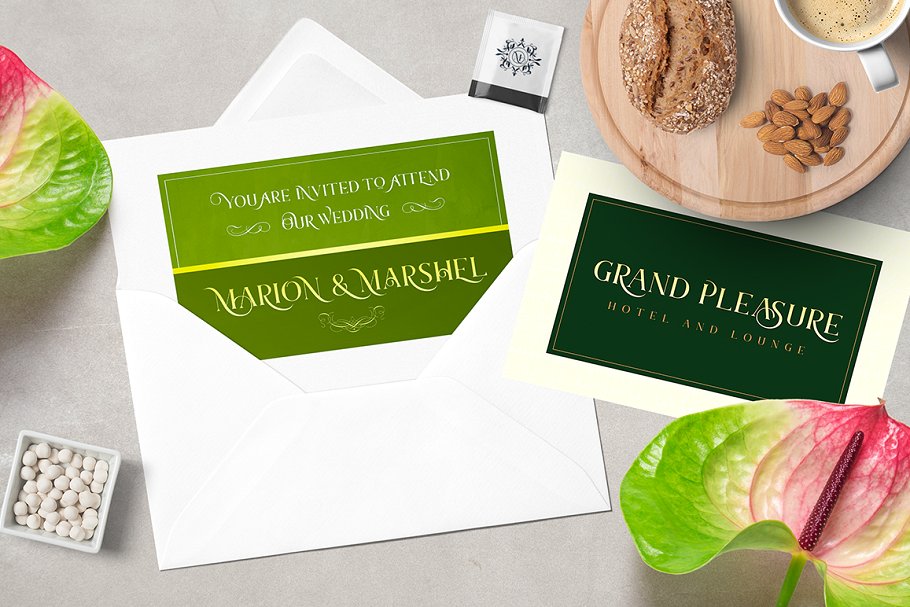 这个版本是从Marschel Basic升级而来的,有了Pro版本,你会得到一组令人惊叹的风格集字符,这将改善你的设计,使它感觉独特。它由400多个字符组成,包括特殊字符、独特的连接,允许您混合和匹配这么多对字母。它非常适合婚礼、头条、电影标题、标识、品牌、邀请函、引用、社交媒体、网站、杂志等等。字体在基本的字形集和文体集之间提供了多种组合的可能性。