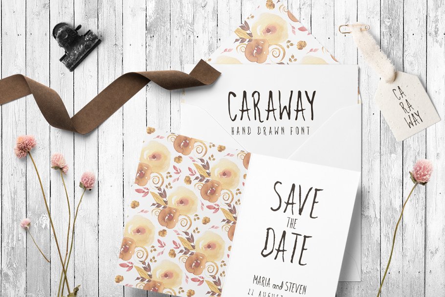 今天介绍这一款Caraway字体 – 适用于邀请函、标志、品牌、博客、手工工艺品、剪贴簿、打印纸张项目等等。