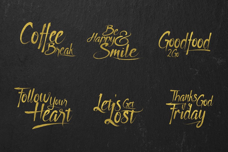 Godfeem是一种使用毛笔书写风格的字体。字符非常独特有趣,适用于徽章、食品菜单设计、信头、引文等。小字体(例如:12pt字母)仍然看起来很好,可读性很强。这个字体的大尺寸会显示这个笔刷字符的细节。这种字体包含两种格式,如OTF (Open Type)和TTF (True Type)。不仅如此,在这个字体包中,除了普通字符之外,你还可以得到这个字体的斜体字符。