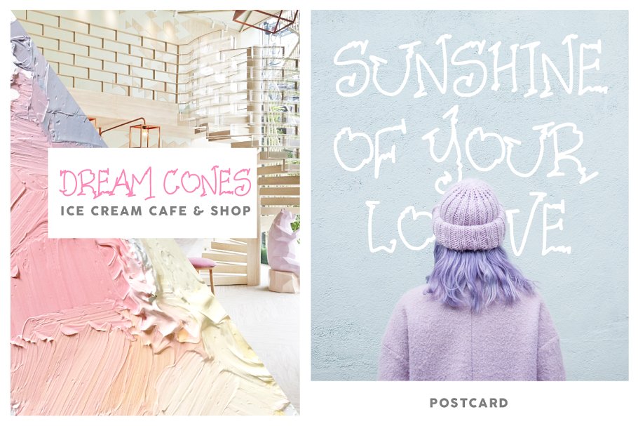 这种字体非常适合任何照片和你的设计。在他们的帮助下,你也可以为你的朋友创建一个标志或漂亮的明信片。或者只用于你的小企业、书皮、文具、市场营销、杂志等等。