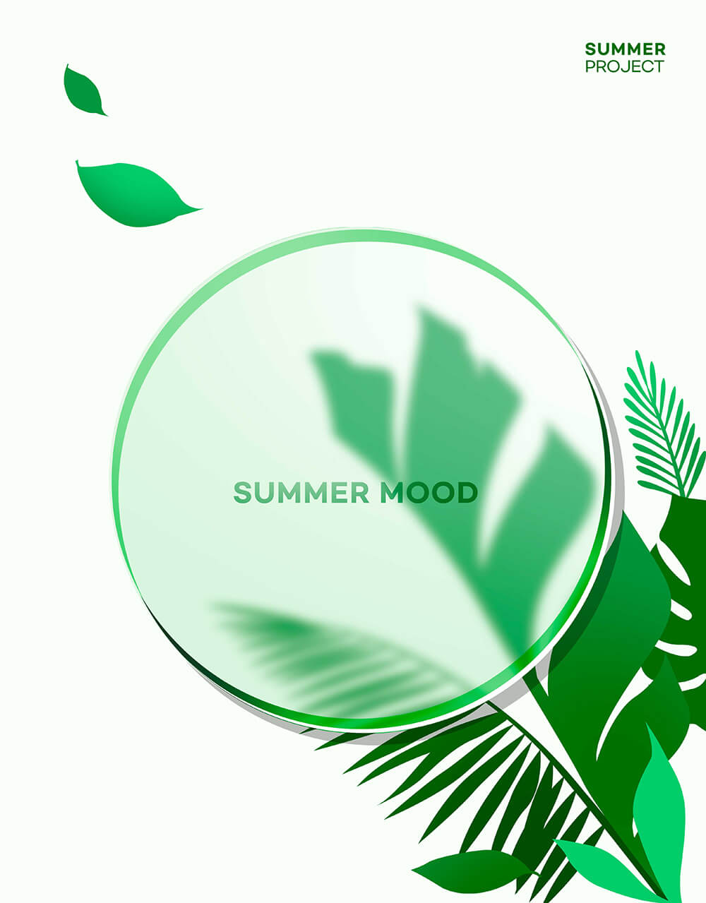 这次要分享的是绿植圆形玻璃元素夏季海报设计模板,psd源文件,非常适合夏季主题活动项目使用。