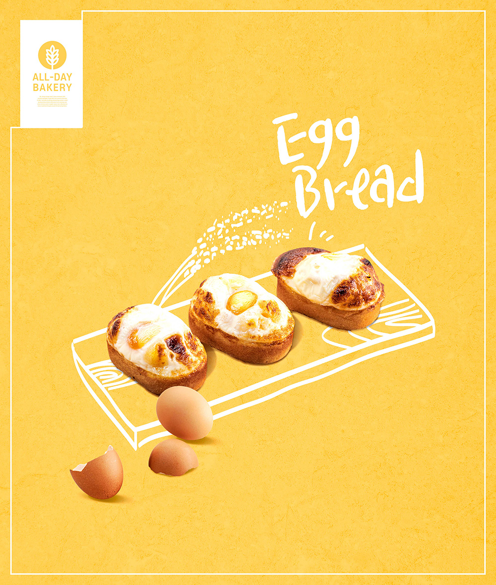 这次要分享的是鸡蛋面包烘焙美食广告海报设计,psd源文件,此模板可用于推广你的面包店食品。