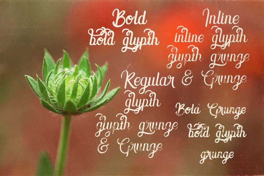 独特的脚本风格自定义字体,带有12种风格。