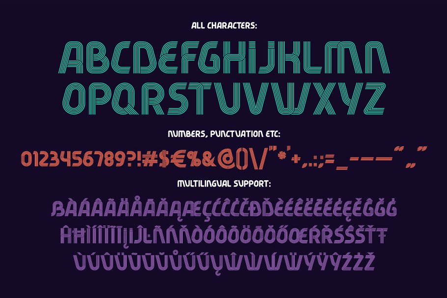 今天展示一个名为“Fiver”的现代装饰字体集。它由五种字体和不同的线条变化组成。梯度颜色效果与五行字体版本是可用的矢量EPS格式。矢量EPS中还包括两张带有刻字引号的海报。