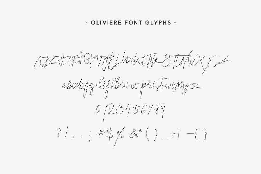 给你的设计一个真实的手工感觉。”Oliviere” 非常适合签名、文具、标志、印刷引用、杂志或书籍封面。字体以TTF、OTF和Woff格式提供。