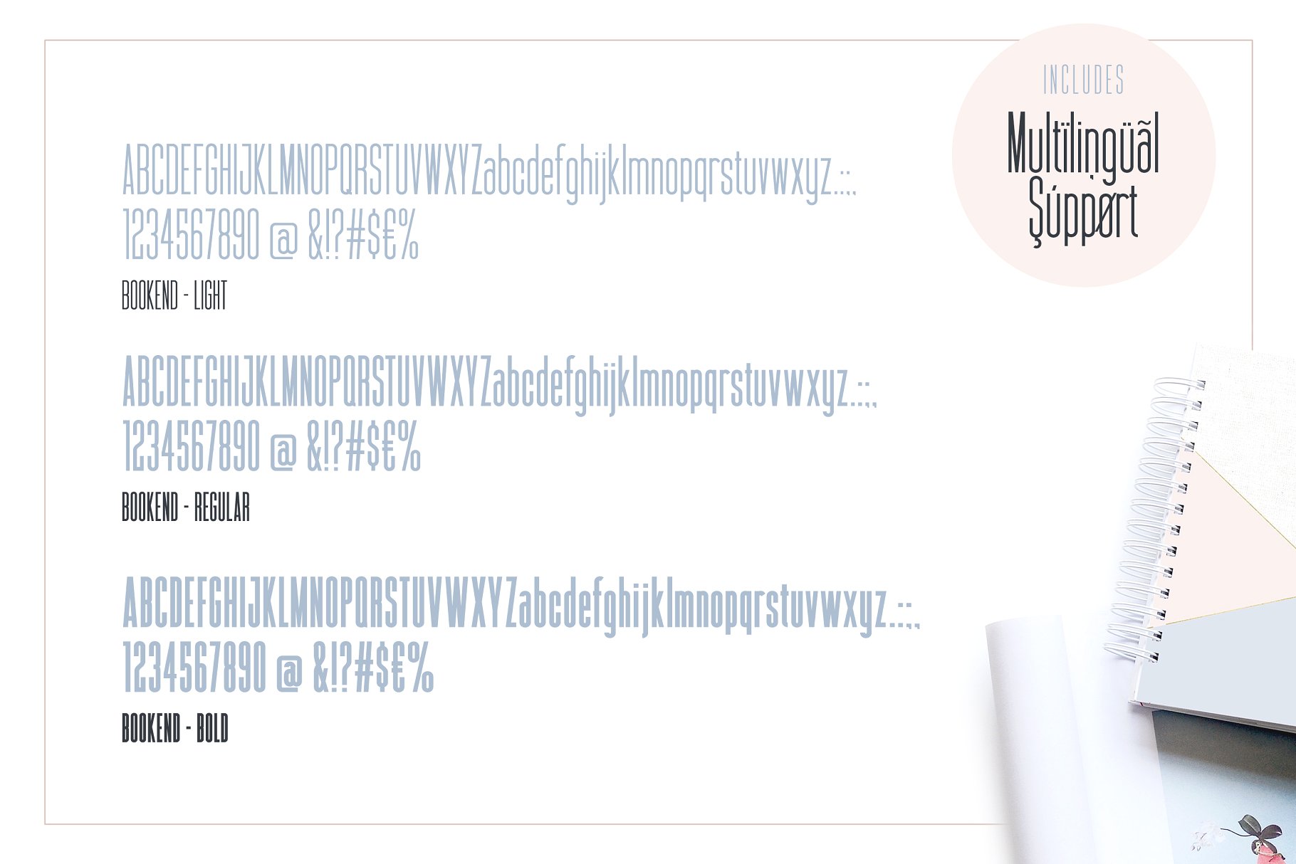今天介绍一款细长的字体,用这种通用的sans显示字体做声明。Bookend具有超级清晰的线条和清晰的可读性,非常适合标题、标识类型、品牌材料、海报等。
