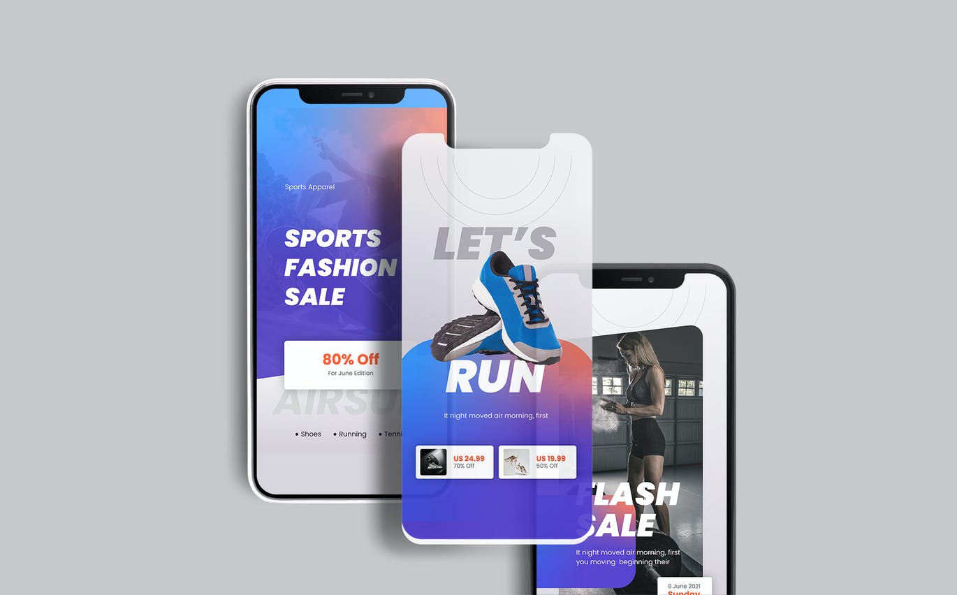 这次老不湿分享的是,时尚高端运动风格的高品质Instagram社交媒体banner海报设计模板集合,它可以包含您的新产品、功能、描述等。 Instagram 上的故事非常吸引人。平均完成率为 75%。这意味着观众会留下来观看所有的故事。这是让您的业务每天变得越来越大的机会!