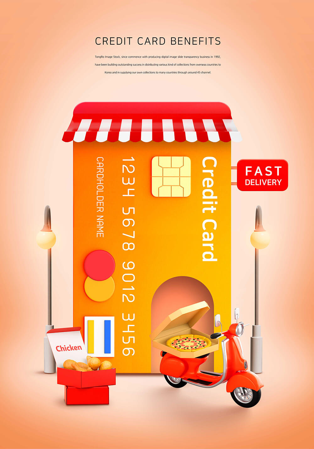 这次要分享的是美食外卖信用卡福利海报设计模板,psd源文件,组织良好的图层,调整十分简单。非常适合信用卡便利生活推广项目使用。