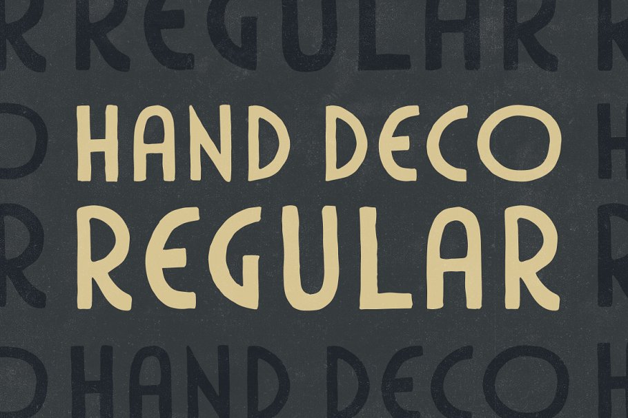 HandDeco Regular是来自HandDeco字体家族的常规样式。HandDeco是一个由四种无衬线字体组成的系列,其灵感来自20世纪早期装饰艺术时代的几何字体。HandDeco Regular将历史悠久的显示类型与手绘字体工艺结合在一起。