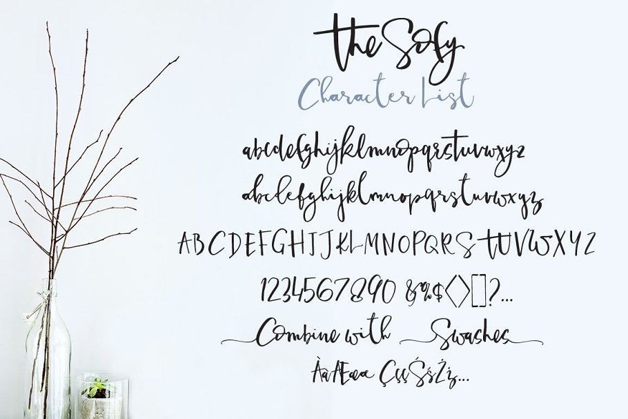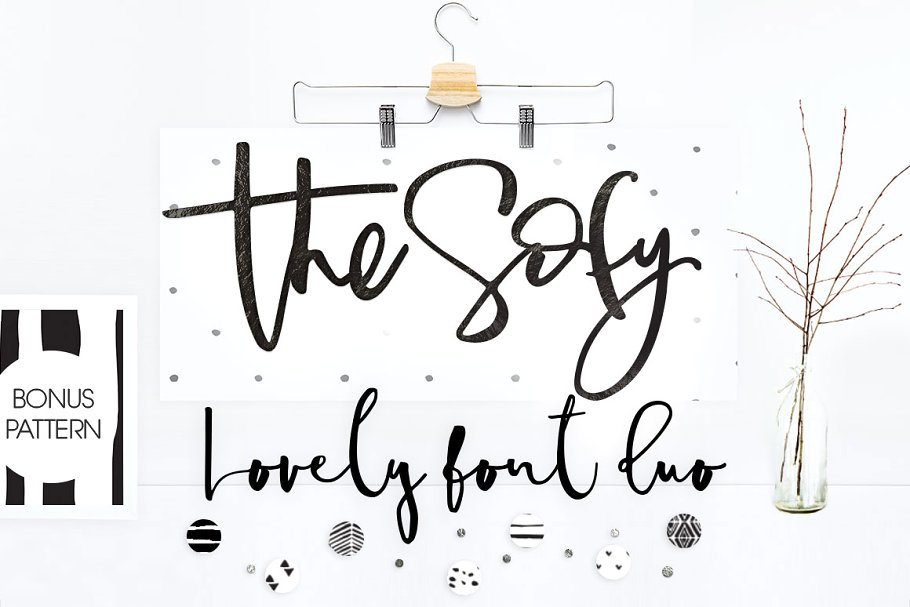 引入了舒适、细刷字体与现代创意笔触,准备给我们的设计带来新鲜的风格。Sofy有两种小写样式(风格的交替),与处理, 和额外的现代手绘图案和剪纸。