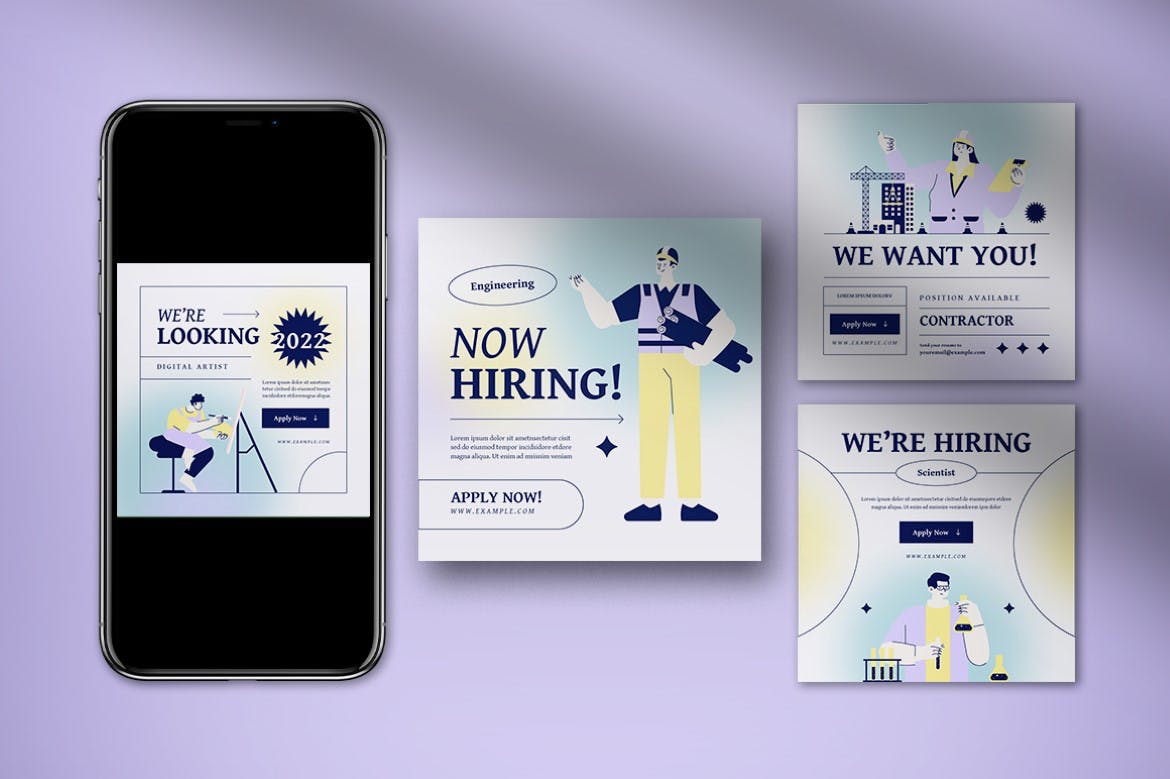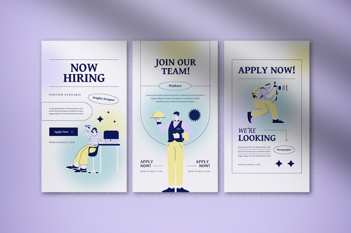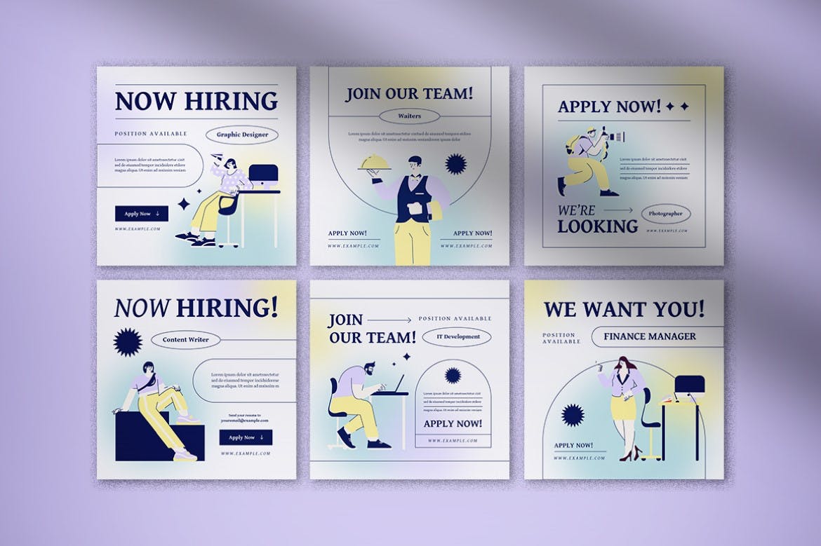这次老不湿分享的是,时尚高端招聘banner矢量插画设计模板集合,非常适合宣传您的商店,与观众互动,发展您的社交媒体帐户等。