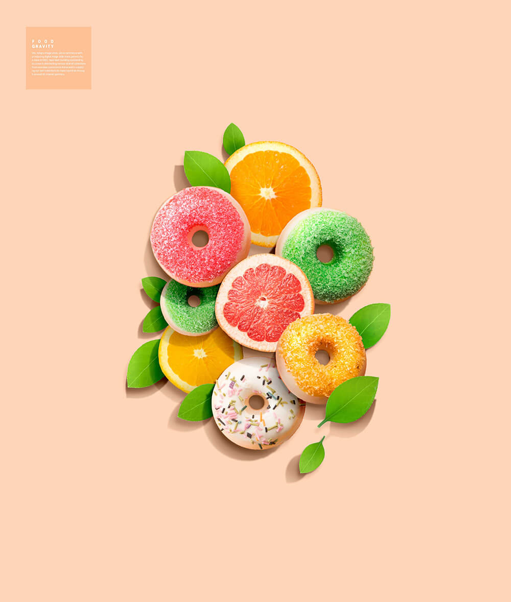 这次要分享的是甜甜圈&水果食品创意海报设计模板,psd源文件,分层设计,用于食品的广告展示。