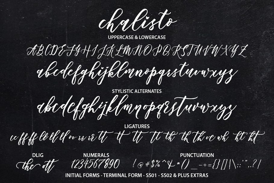 Chalisto Script是一款书法手写字体,一种跳舞的书法或波浪的书法风格, 适用于品牌项目、包装产品、婚礼、请柬、名片、商标等。它包含一套完整的小写字母,大写、大量的标点符号,数字和多语言支持。