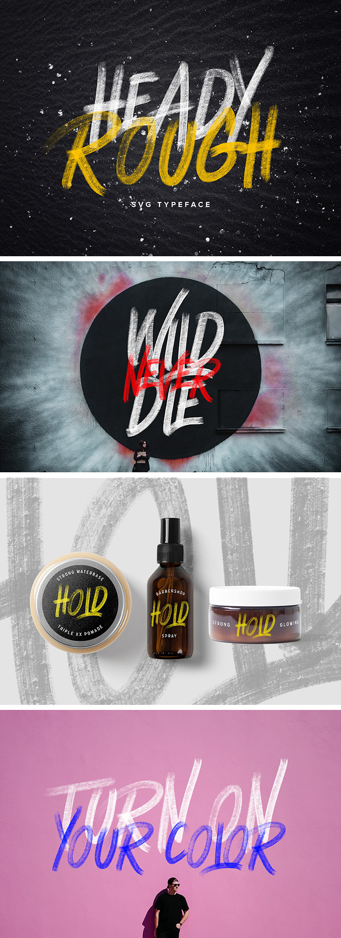 Elin今天分享滴Heady是一款功能强大的手绘笔刷字体,通过使用具有令人难以置信的清晰度的高分辨率笔刷笔触图像创建,带来一些最终真实,真实的外观。将此字体添加到您的印刷品,徽标海报,文具,包装或其他任何东西,但尽量不要过度使用您的艺术品:如此充满活力,Heady Rough不需要太多的口音。因此,只需获取它,搜索胜利但简单的组合并设置以吸引客户和同事的注意力。