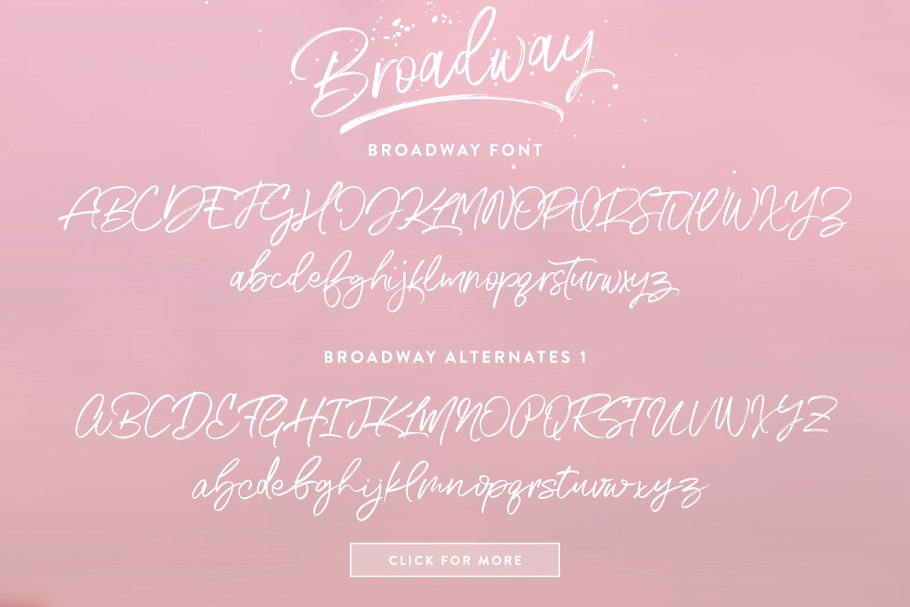 百老汇字体是手刷字体,带有多语言支持。是t恤、杂志、电话封面、社交媒体、餐厅菜单、贺卡、邀请函、婚礼、标题等的理想选择。这种笔刷字体提供了一套完整的小写和大写字符、大量标点连接、数字和多语言支持。