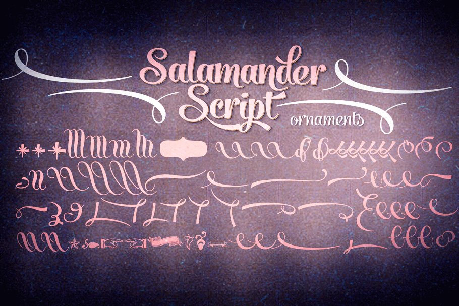 Salamander 是一个有趣而敏捷的脚本家族,由两个砝码和配套的装饰品组成。点击Swash,上下文或风格的变化在任何开放类型悟性应用生动的替代字符,并结合Salamander完美地装饰您的设计。