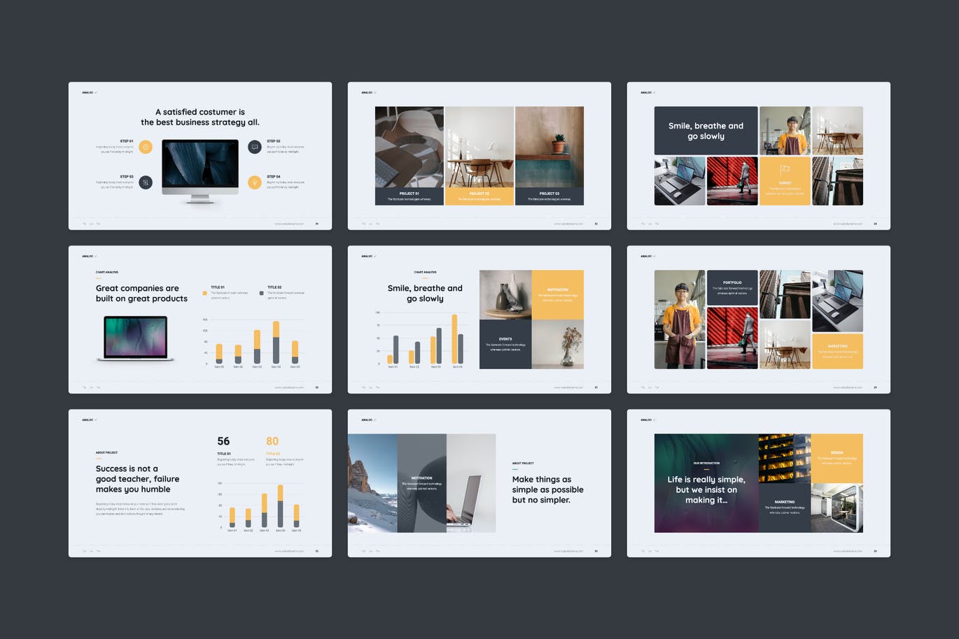 这次老不湿分享的是,时尚高端清新极简简约多用途的高品质大数据powerpoint幻灯片演示模板(pptx),这个最小的演示模板非常适合展示您的投资组合和创造力。你可以用它来制作一个有效的幻灯片来赢得你的观众。该模板带有充满时尚设计的创意幻灯片,还包括一个完整的动画版本。