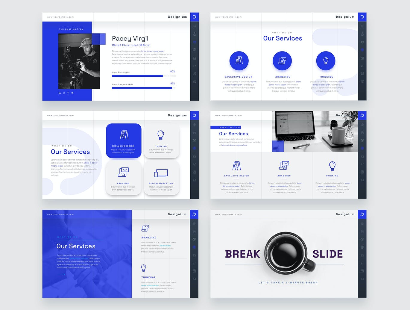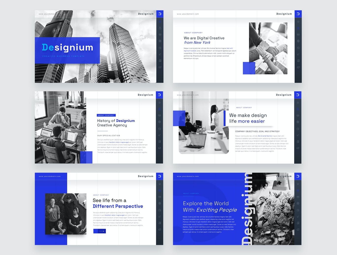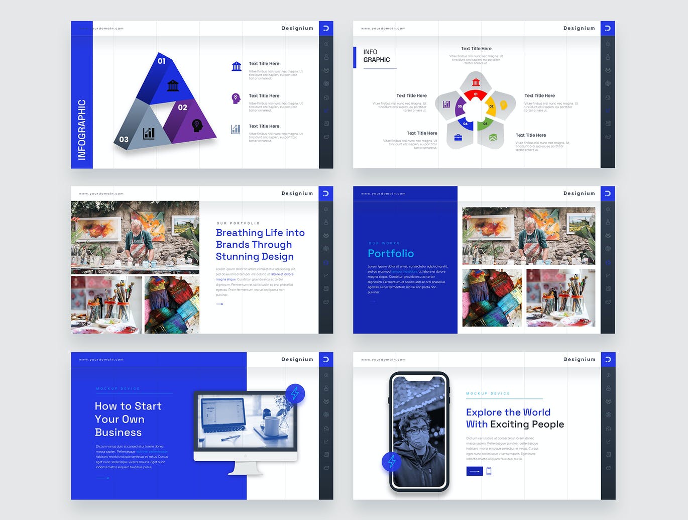 Designium是一个干净,专业,易于使用的PowerPoint模板。它非常适合各种商业领域,包括:商业、时尚、提案展示、企业品牌、物业、摄影。