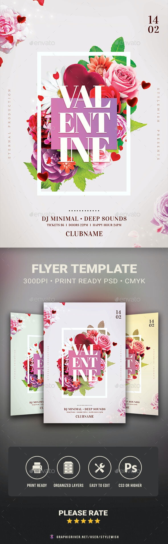此玫瑰花卉情人节活动邀请海报传单设计模板旨在促进情人节活动:可爱的舞蹈活动,热情的夜总会聚会或在酒吧或餐厅邀请约会活动……通过这种设计,您将征服观众的心!只需单击几下,即可快速,轻松地定制颜色、图片、元素和文本。