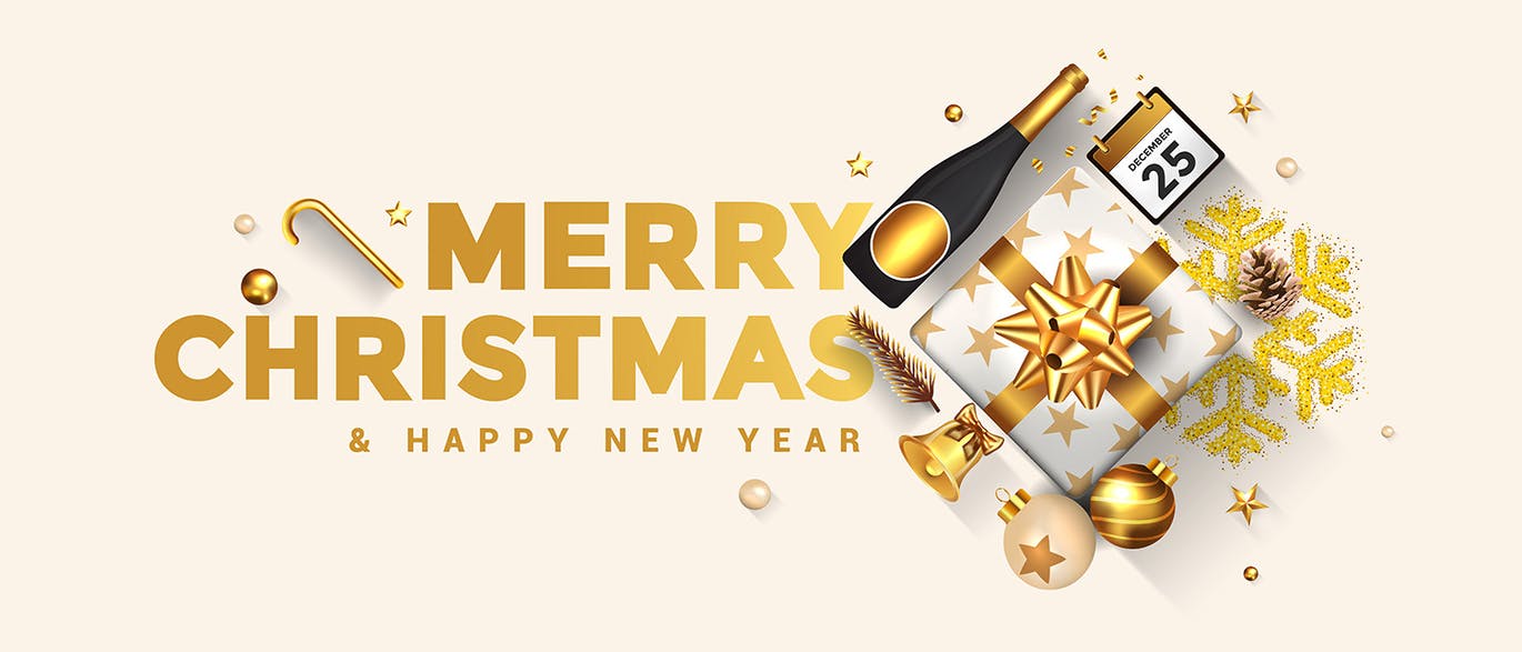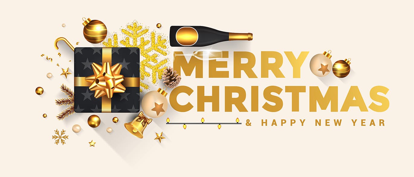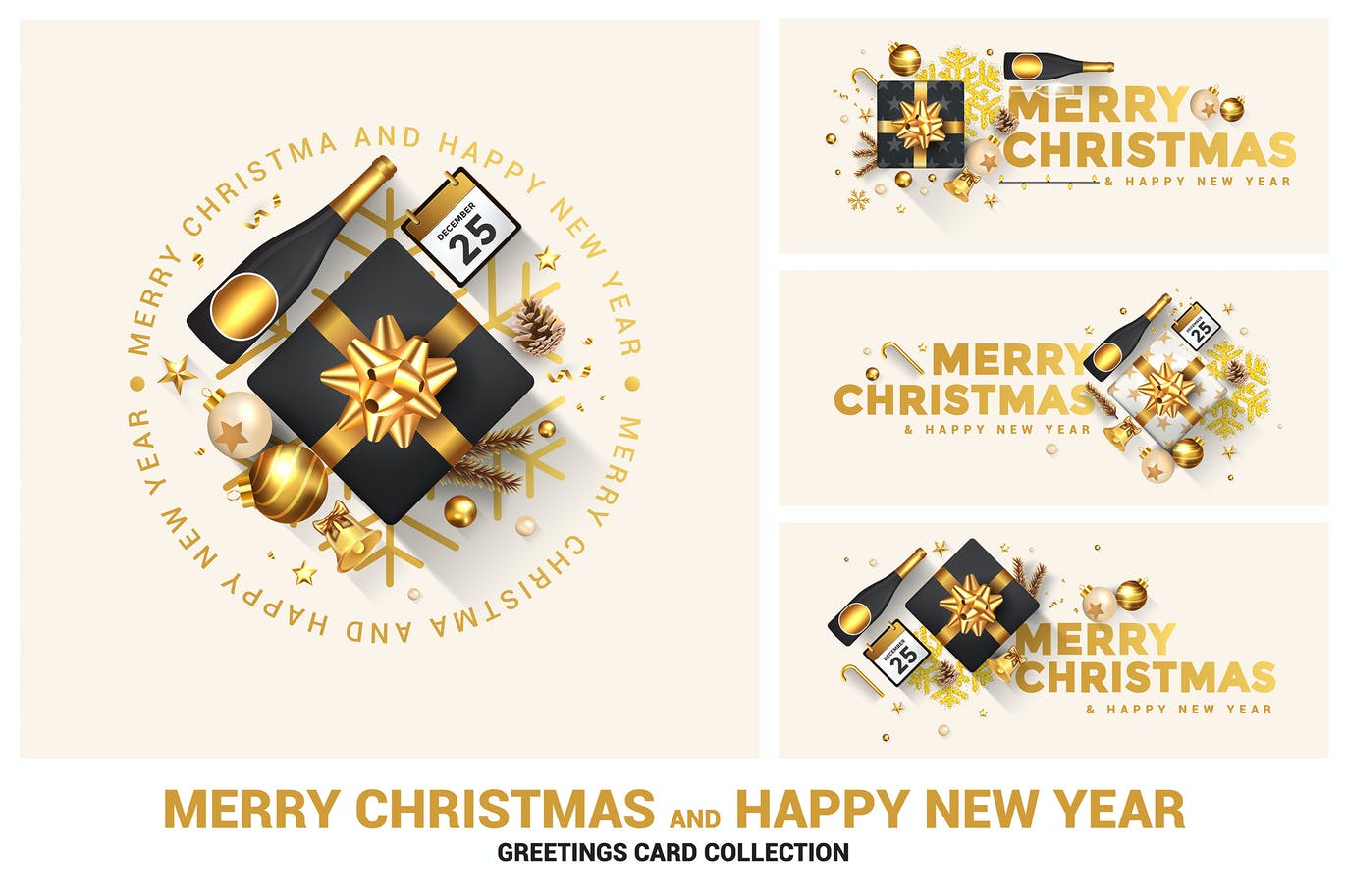 这次老不湿分享的是,时尚高端简约新年圣诞节banner海报设计模板-AI,EPS,JPG,PDF,圣诞快乐,新年快乐贺卡。假日设计用礼物盒,金球,酒瓶和星装饰在明亮的背景。向量例证