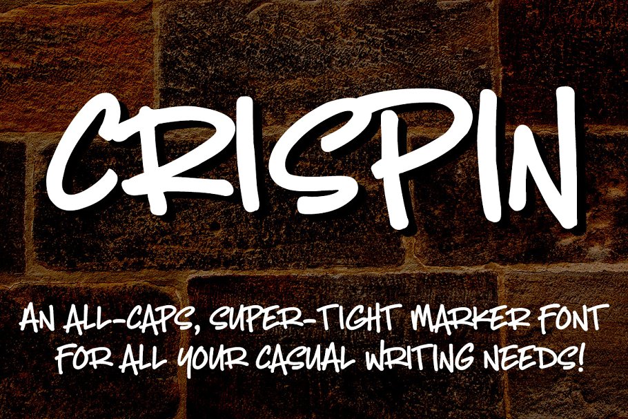 Crispin是一种双大写字体:一组大写字母映射到大写,另一组大写字母映射到小写。它可以让你在双字母单词中加入一些变化,给它们一个真正手写的外观。 间距很紧,笔画很粗,所有这些都让你的项目感觉像是用沉重的记号笔写的。笔画被清理干净了,所以这对制作来说很好