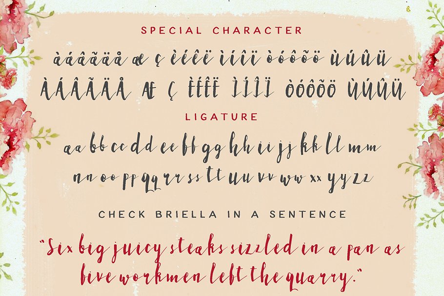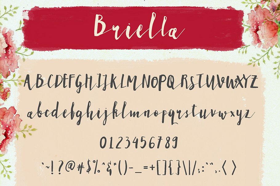 Briella是一种女性化的简单草书字体。由手写字体创作,Briella最适合:婚礼邀请、生日卡片和贺卡、海报、回信地址、签名、品牌工作、标志等等更多。