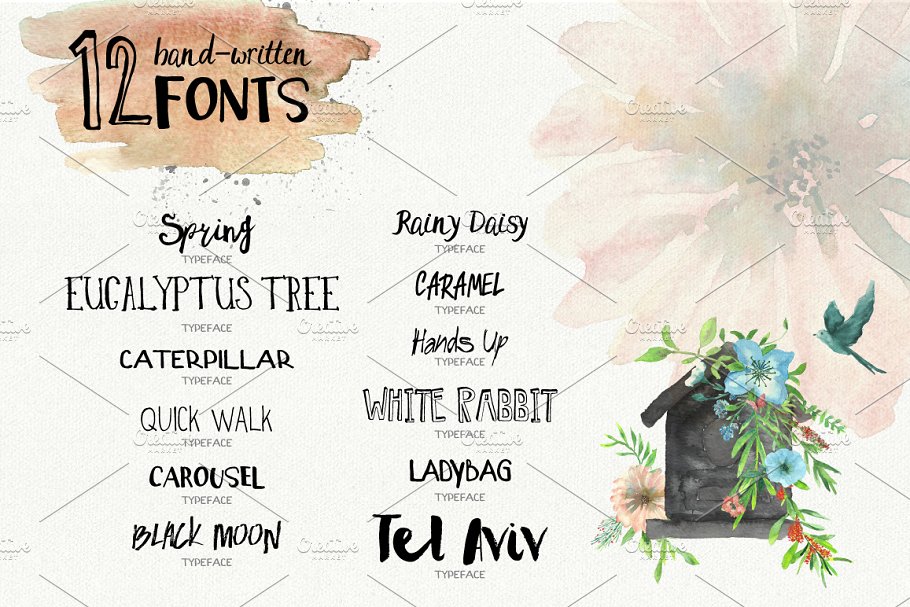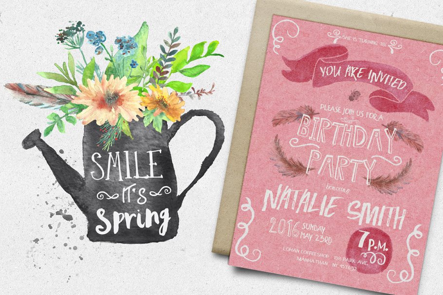 春季庆典(手写字体和水彩插图集合)