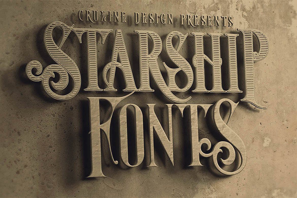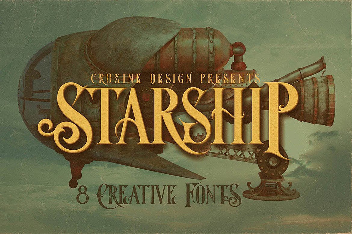 这次老不湿分享的是,高品质的欧式复古蒸汽朋克风格衬线字体,8个字体文件(otf&ttf) – 常规&垃圾,内联和垃圾,阴影和垃圾,阴影内联和垃圾