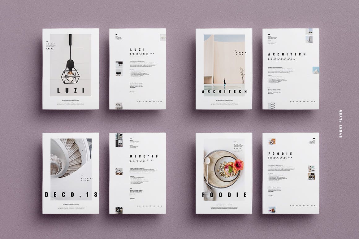 这次老不湿分享的是,高端时尚简约清新多用途A4尺寸海报设计模板集合,每个设计有4个版式版本,16页文档。
