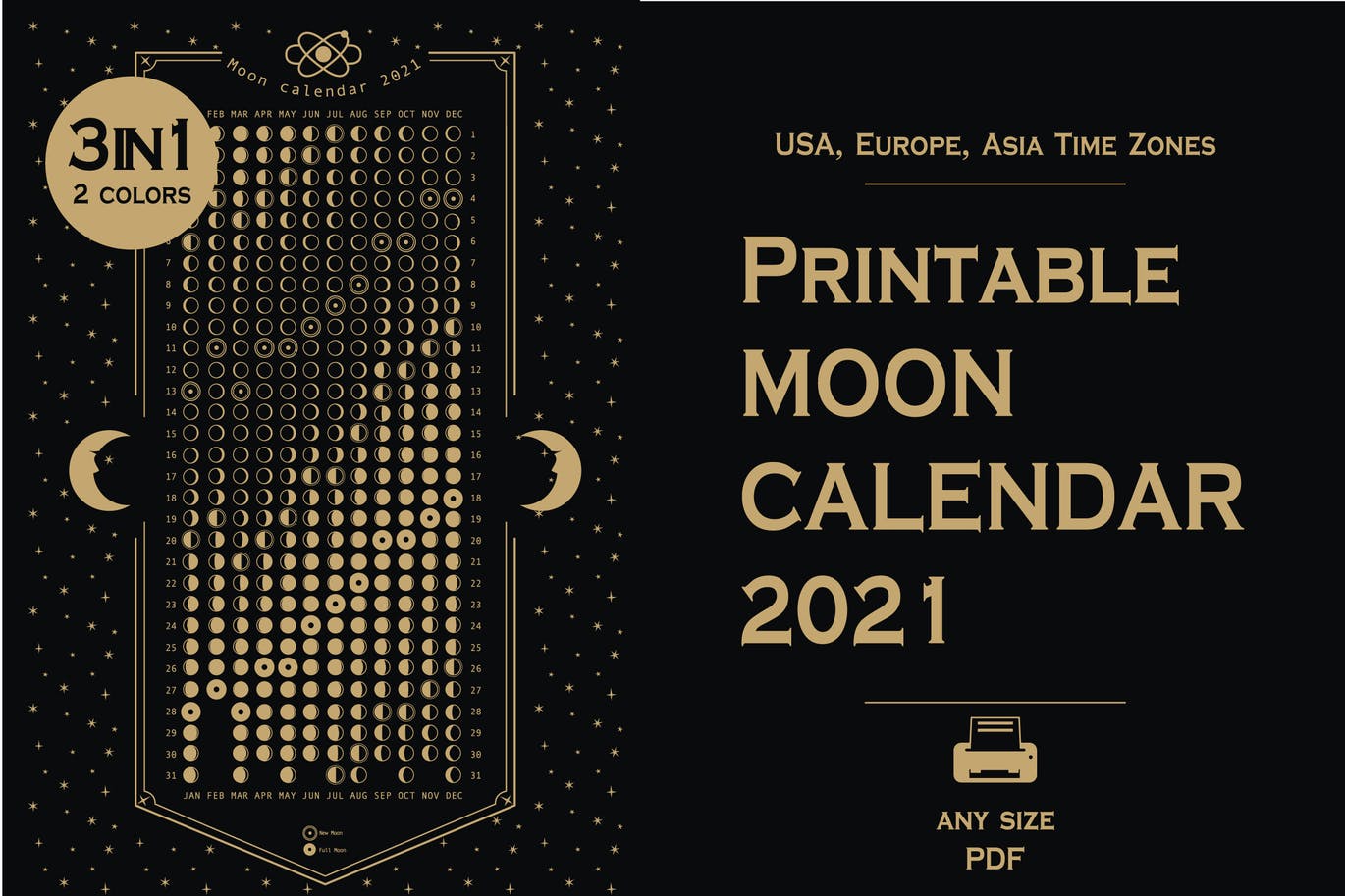 这次老不湿分享的是,高端时尚个性的可以直接打印的2021年新年月相日历台历设计模板-PDF,AI,2021月相日历包括详细的月相日历。
