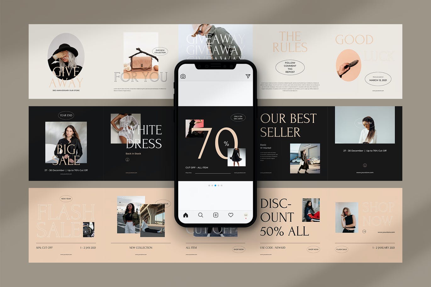 这次老不湿分享的是,优雅时尚高端简约社交媒体Instagram轮播图海报banner设计模板-PSD,旨在帮助您在Instagram或Pinterest上的同一帖子中设置时尚的多张照片。该产品包具有用于社交媒体(如Instagram和Pinterest)的独特模板,可提升您品牌的外观。