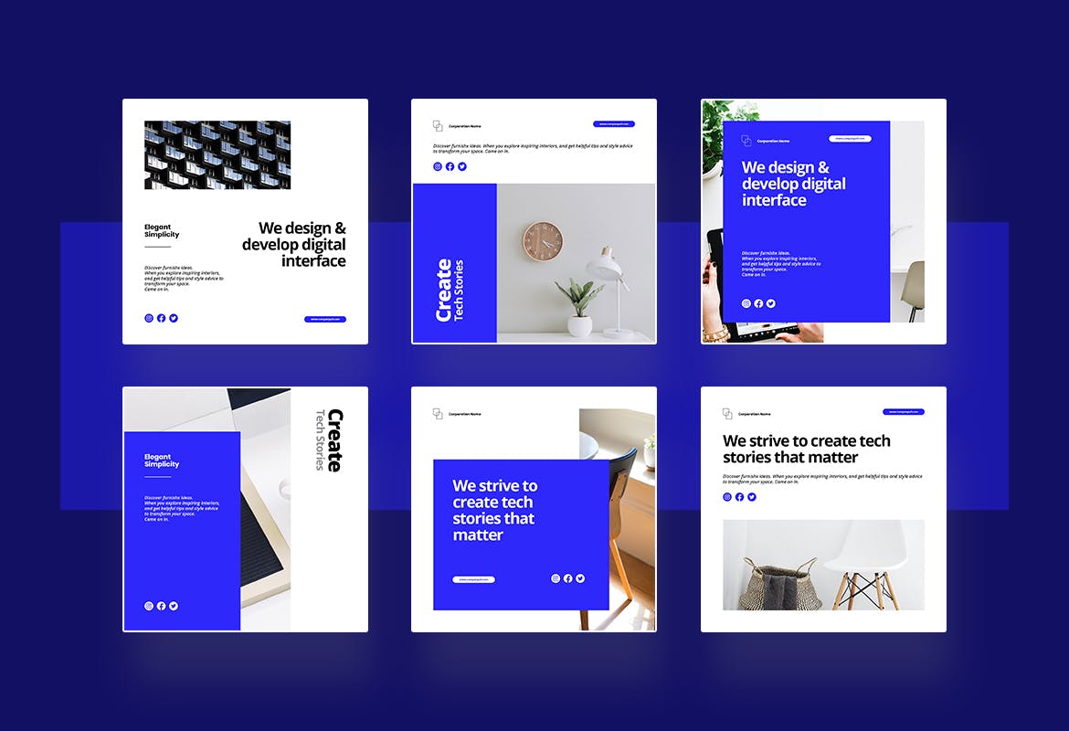 这次老不湿分享的是,时尚高端专业优雅多用途的高品质Instagram社交媒体banner海报设计模板集合Vol.2-AI,PSD,具有现代主题的优雅公司Instagram包模板。该模板非常适合企业,代理商,企业家,创意人员,公司,企业等。使用此模板,使您的Instagram促销看起来令人惊叹和引人注目。该模板包括12个独特且酷的Instagram帖子以及PSD和AI格式的Story模板。您可以使用Adobe Photoshop和Adobe Illustrator轻松地进行编辑和自定义。