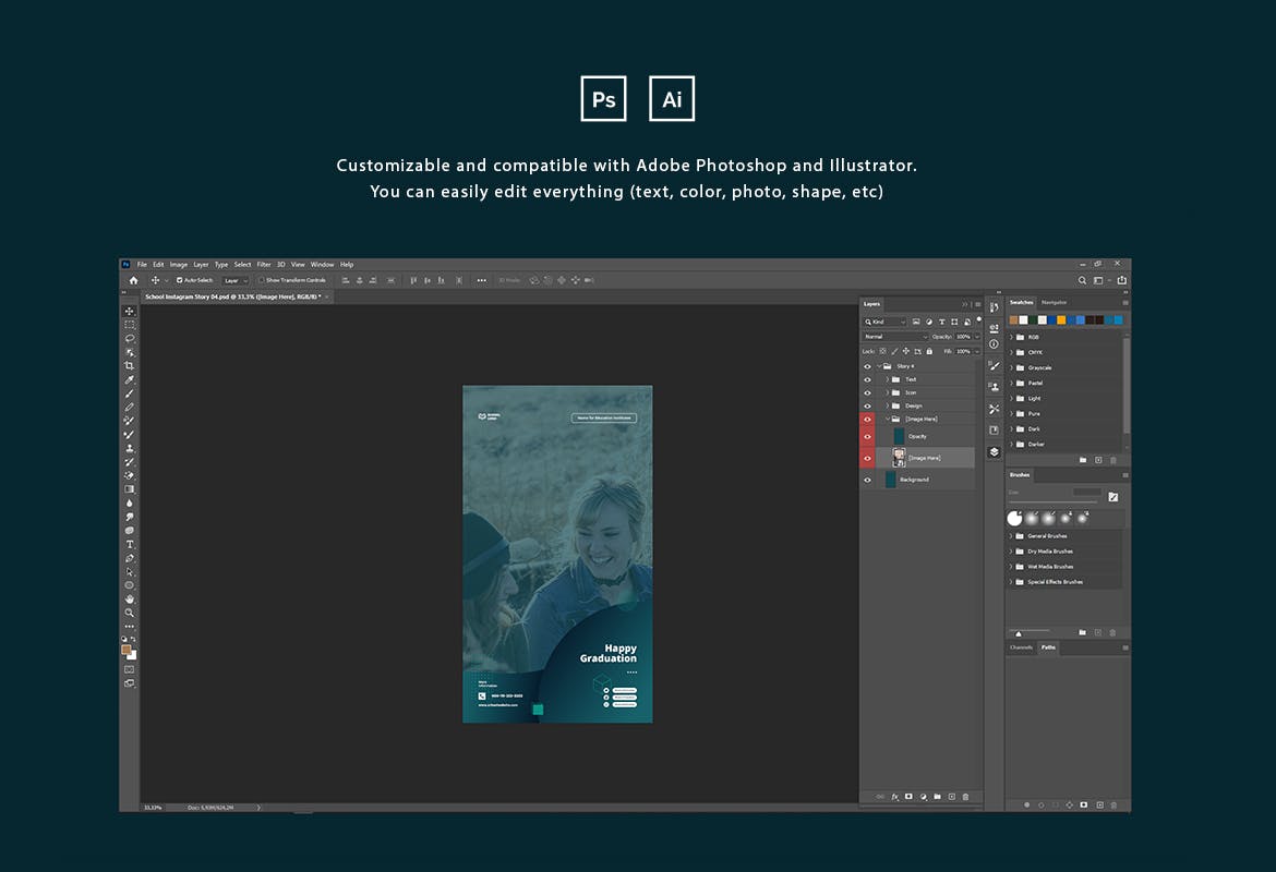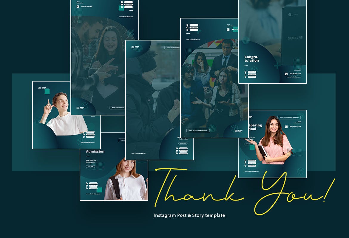 这次老不湿分享的是,时尚高端简约优雅多用途的高品质Instagram社交媒体banner海报设计模板集合-AI,PSD,具有现代而优雅的风格。该模板非常适合初中,高中,校园,大学和教育行业。使用此模板,使您的Instagram促销看起来令人惊叹和引人注目。该模板包括12个独特且酷的Instagram帖子以及PSD和AI格式的Story模板。您可以使用Adobe Photoshop和Adobe Illustrator轻松地进行编辑和自定义。