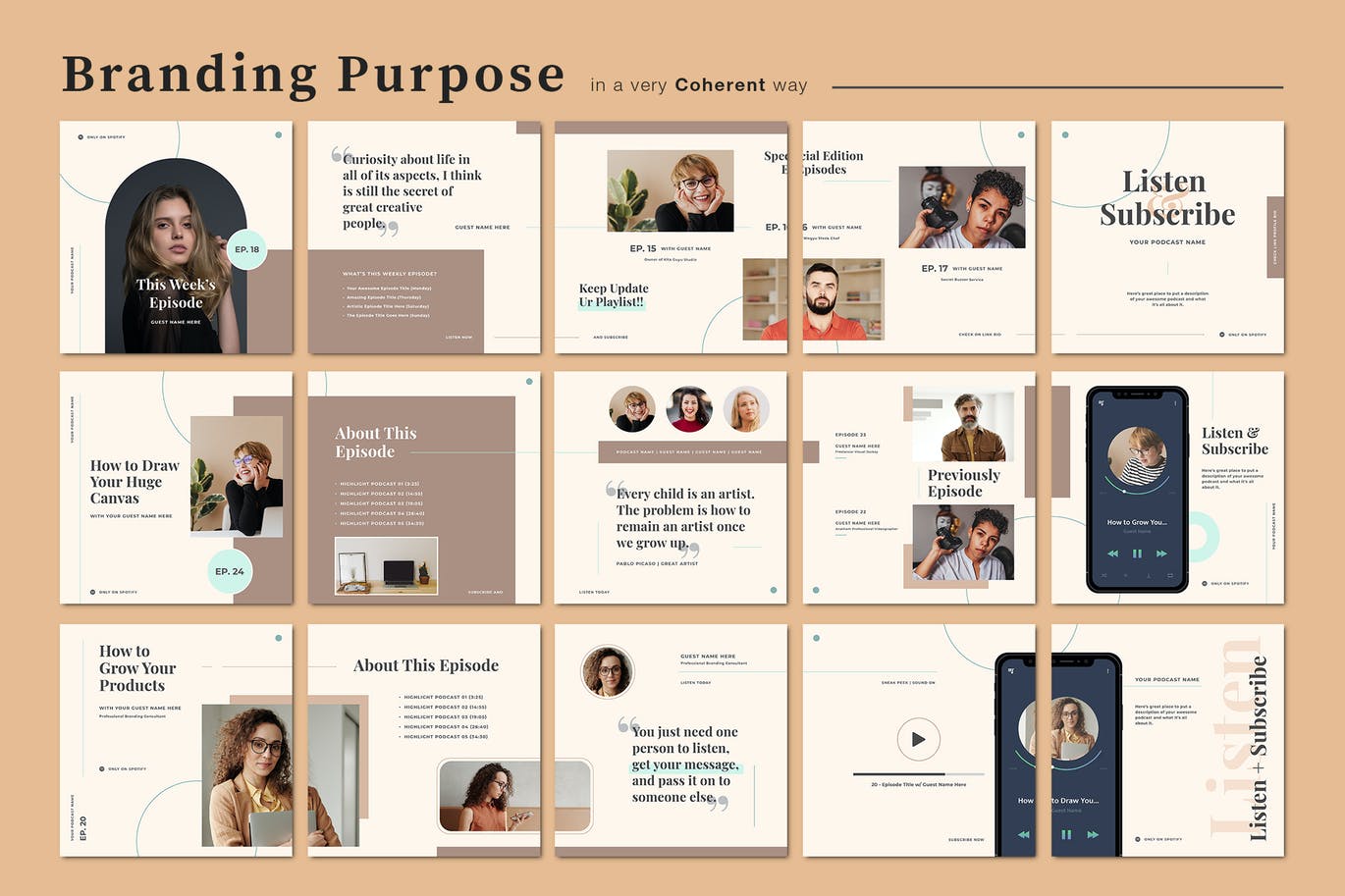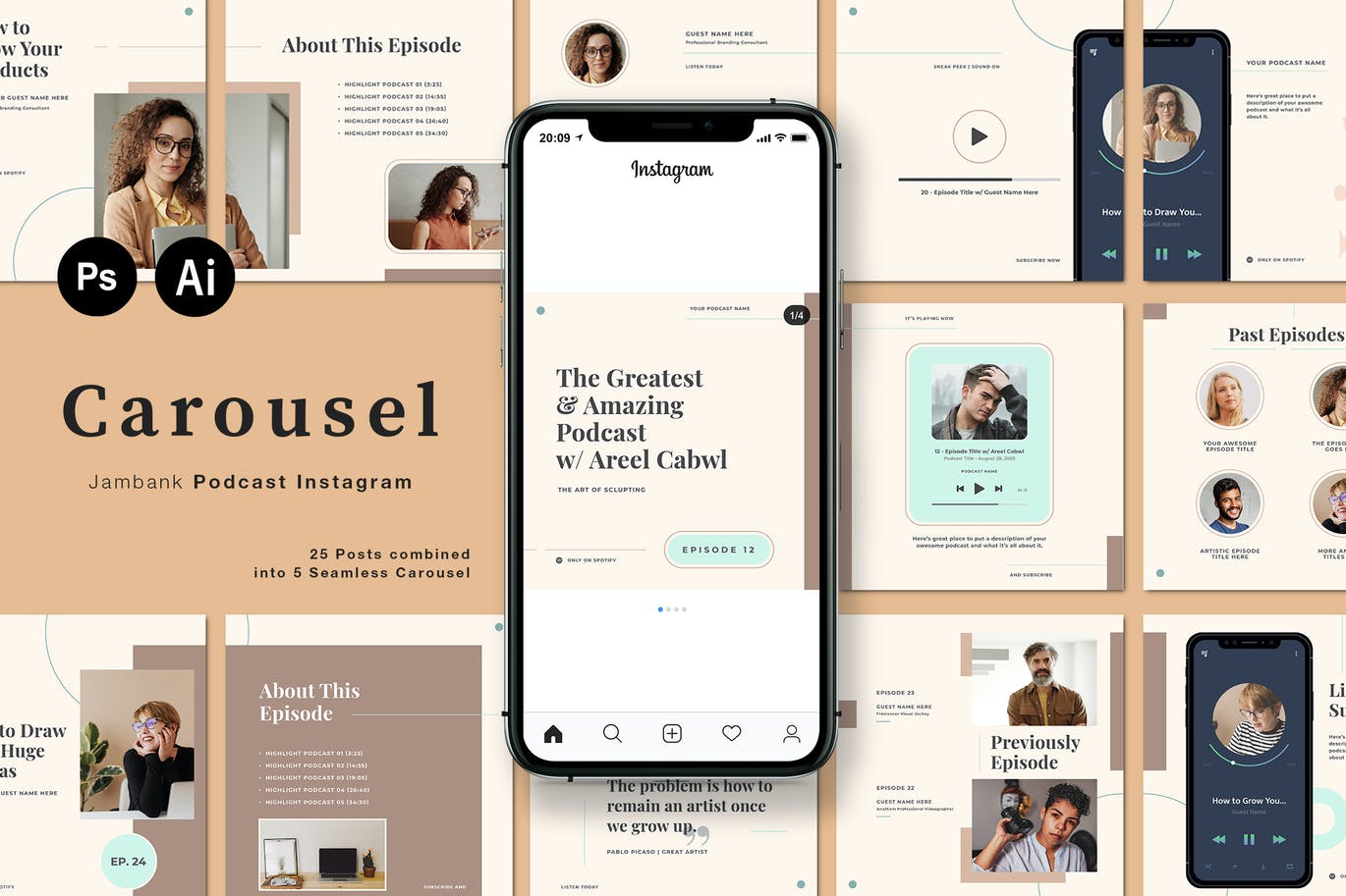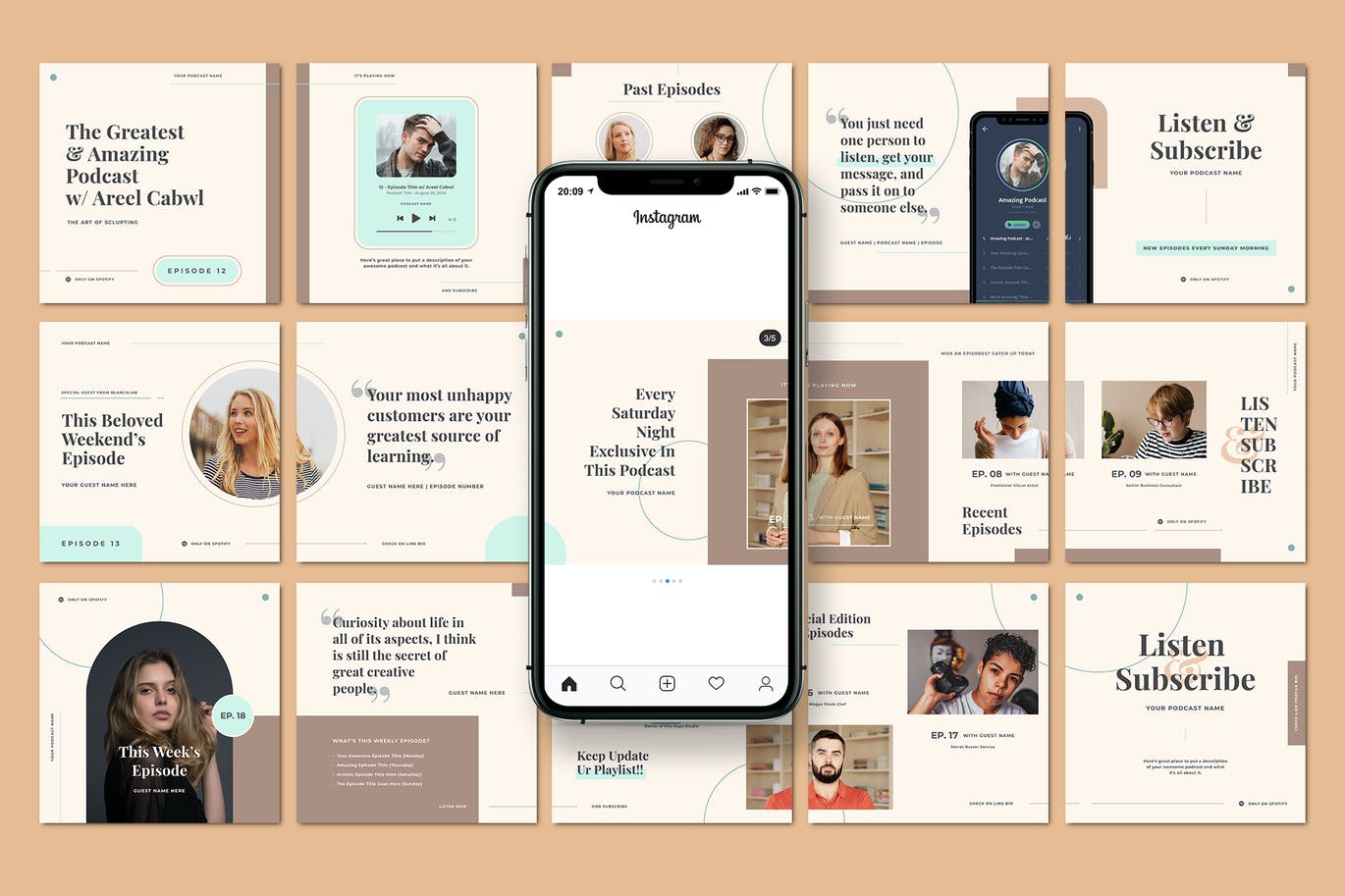 这次老不湿分享的是,时尚高端优雅简约清新Instagram社交媒体banner海报设计模板集合,您可以在几分钟内轻松创建吸引人的注意力和富有创意的轮播帖子。这些可自定义的Instagram轮播模板非常适合Music Studio,Podcaster,Music Streaming,以及任何想通过讲故事与听众互动的人。该产品包括5种轮播模板布局中的25个帖子,是增强社交媒体,与客户互动并吸引潜在客户的理想方式。